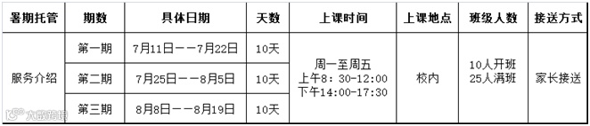二、校内暑期托管服务类别:基础托管和特色托管;10人以上开班。