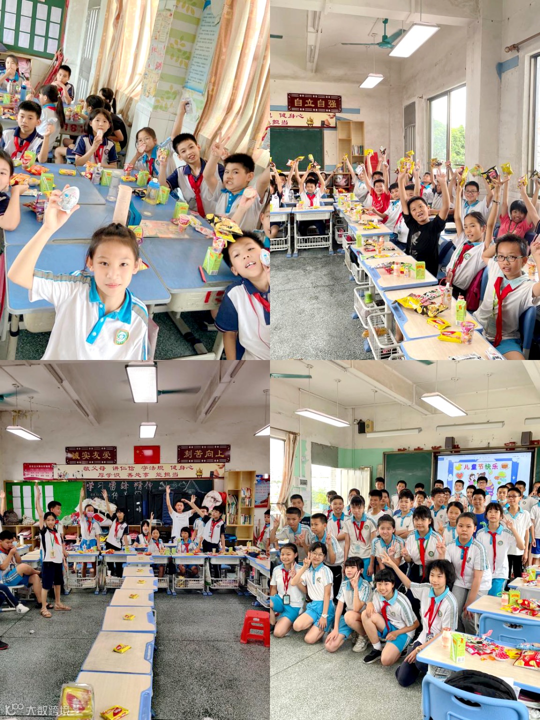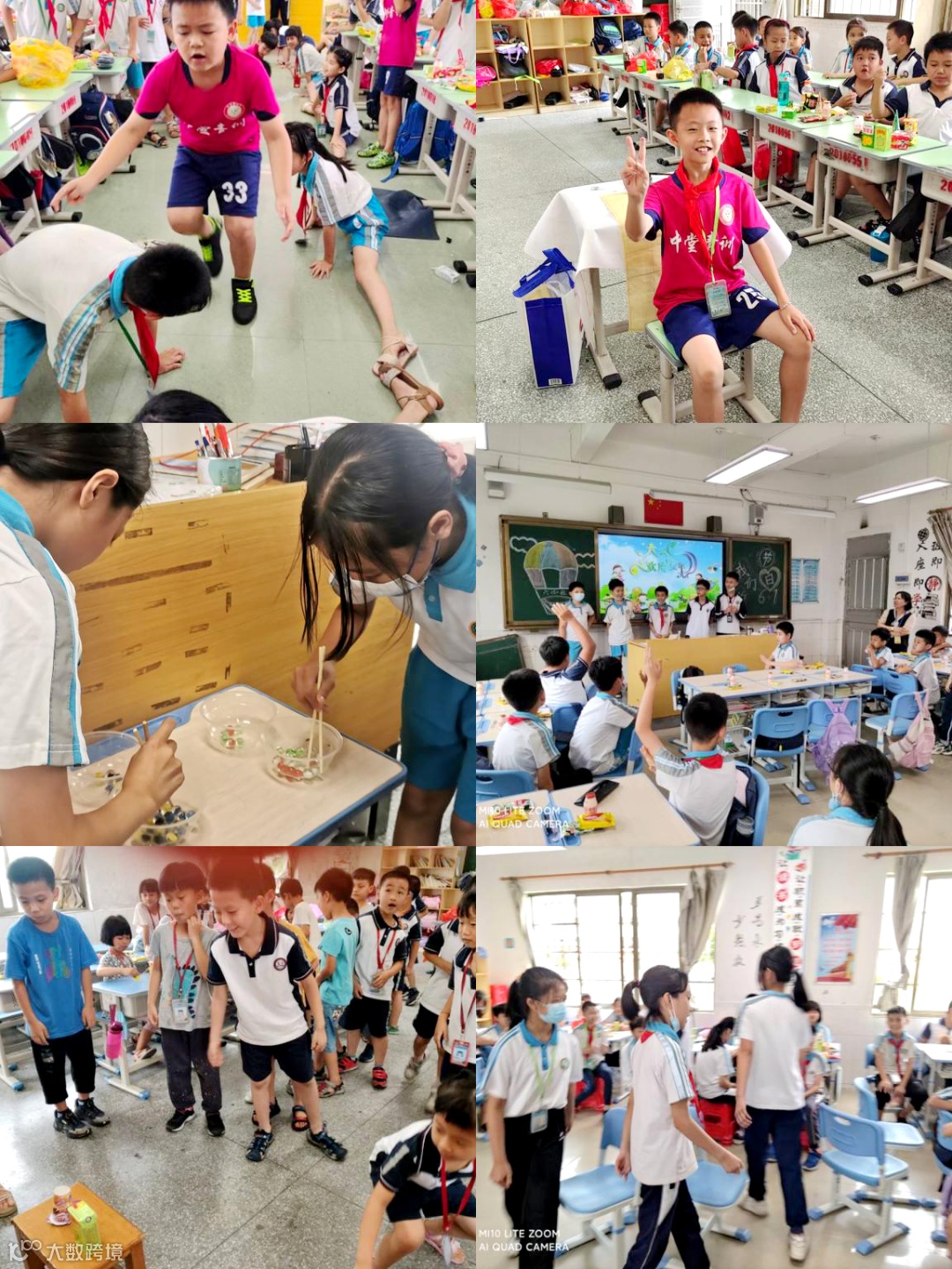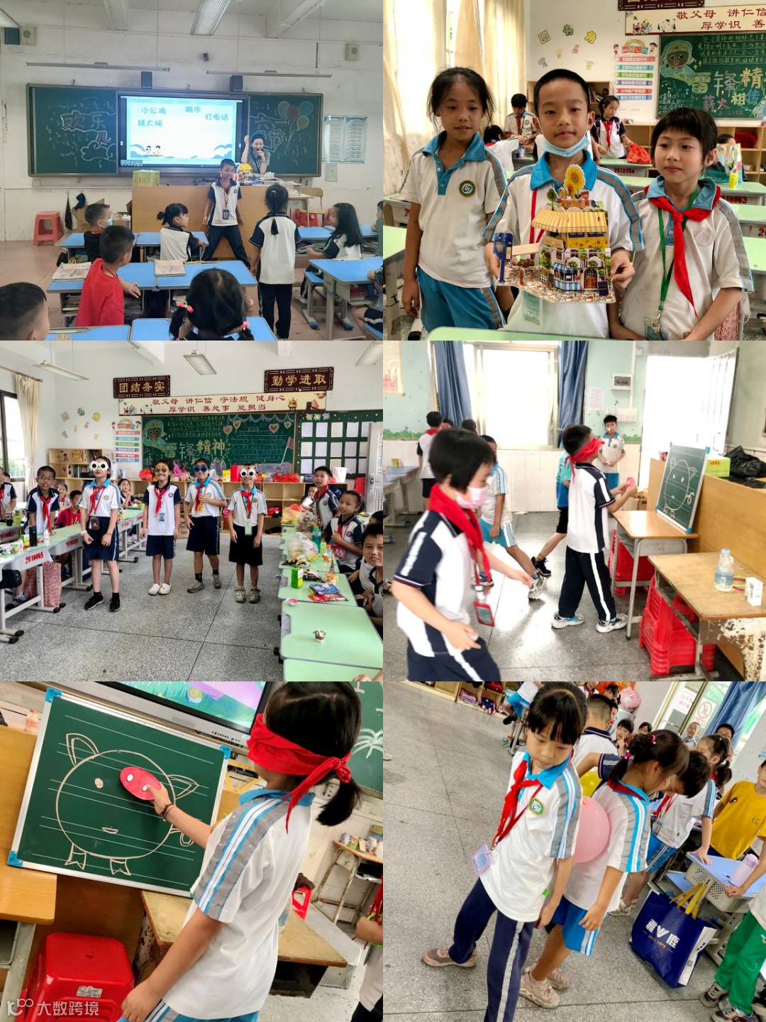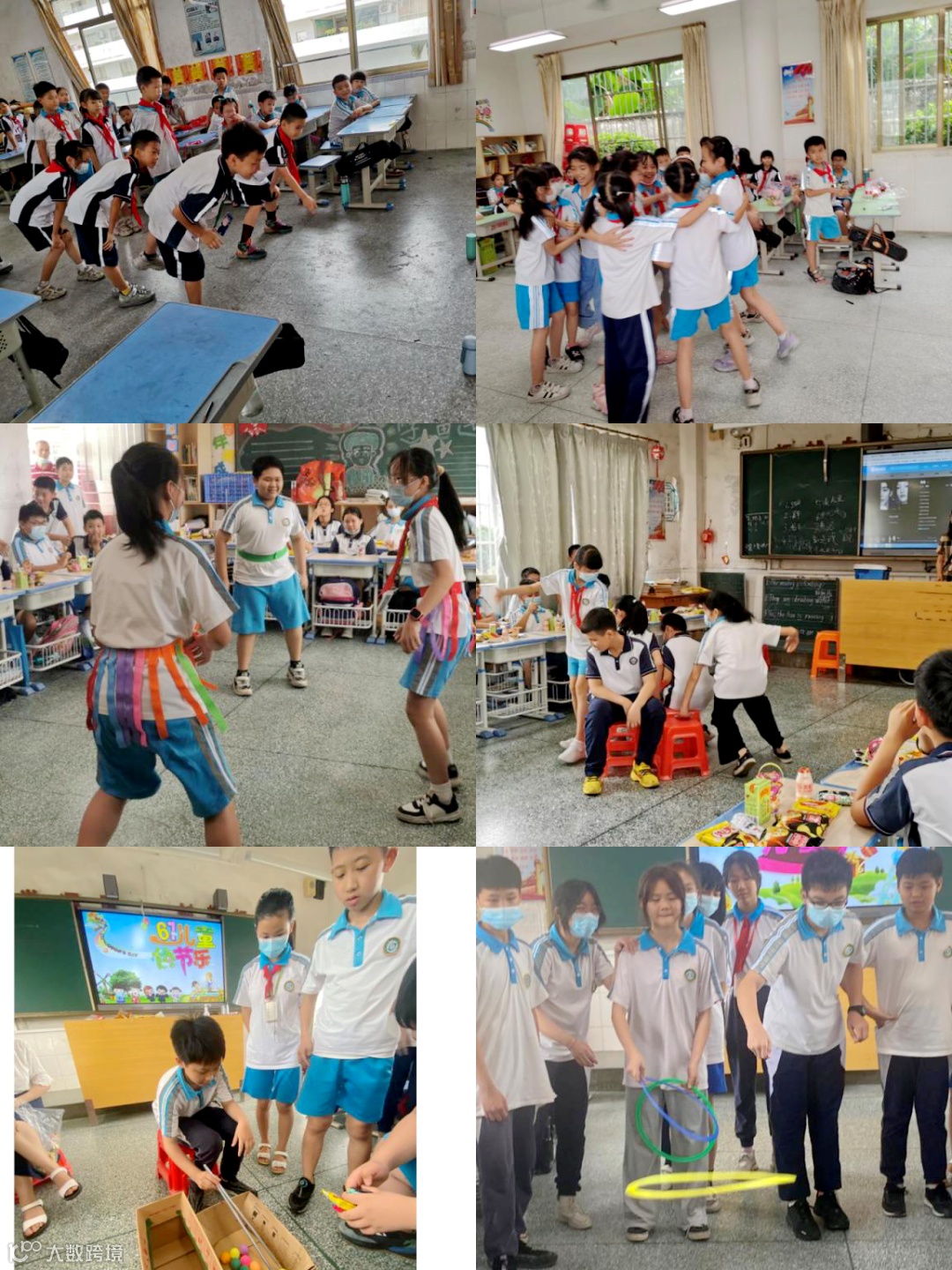 抢板凳、唱歌比赛、朗诵比赛、夹乒乓球、夹玻珠、盲人贴画、夹气球、套圈圈等等各项游戏,看同学们使出浑身解数,孩子们脸上洋溢着幸福的笑容,个个享受着游戏带来的乐趣。教室里不时爆发出阵阵欢呼声和响亮的掌声,校园里一派喜气洋洋。