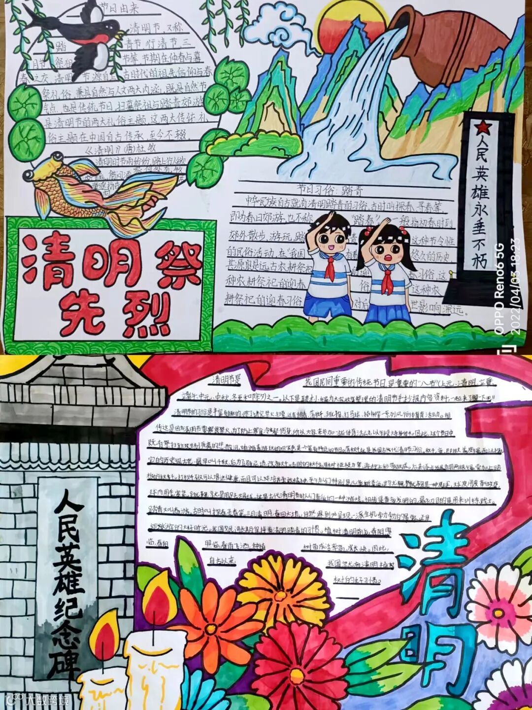 少先队员们用一幅幅画作和手抄报还原先锋形象,向先烈致敬,表达对先辈的爱戴,感恩幸福生活。