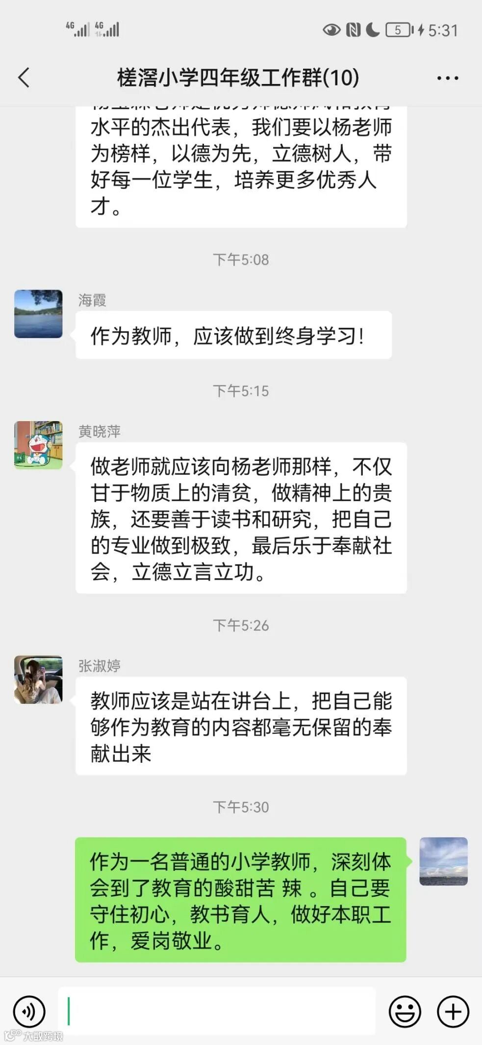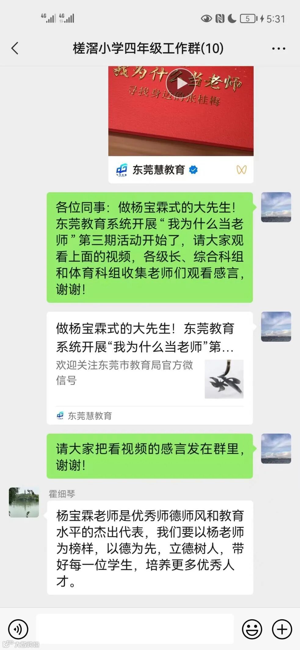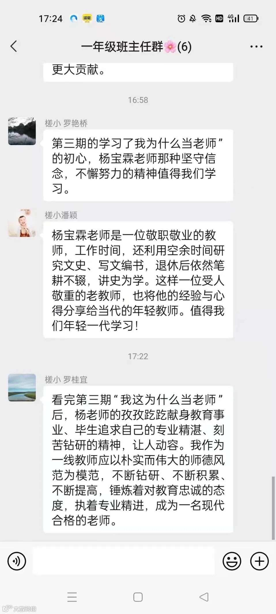 在善于反思中提升专业。视频观看完后,各年级、各科组组织教职工学习讨论,激励大家坚守“我为什么当老师”的初心,以杨宝霖老师等先进典型为榜样,始终坚守信念,不懈努力,来看看他们是怎样说的: