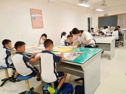 8.40正式开课!志愿者带领同学们到课室相互介绍和课程安排,一共分为A、B两个班,A班是硬笔组在教室上课,B班是软笔组在书法室上课。