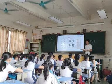 先来看看A班的开课情况:A班的同学们都很活泼可爱!很快地就找到座位坐下,拿出笔和纸放在桌面,等待着与志愿者们的互动,在志愿者介绍硬笔种类后,与同学们讨论交流,很快地,教室氛围热闹起来了!