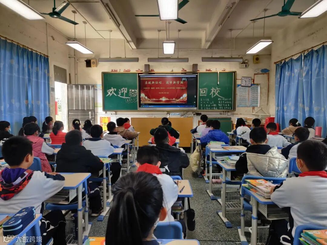 观看完直播后,我们的线上开学典礼正式开始啦!活动由学校办公室主任刘传平主持,各班级在教室内收看。