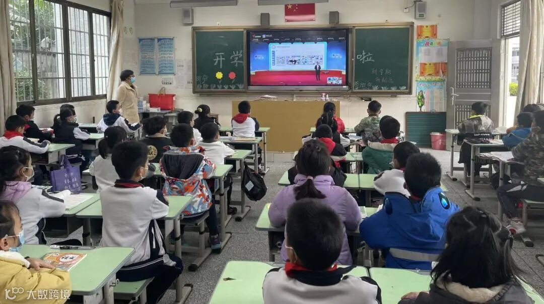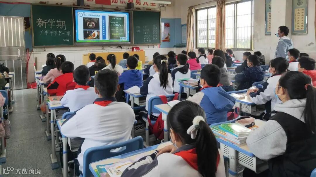 教室里,窗明几净,学生们认真地观看《开学第一课》的直播视频。