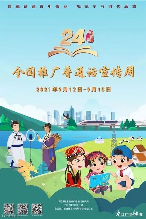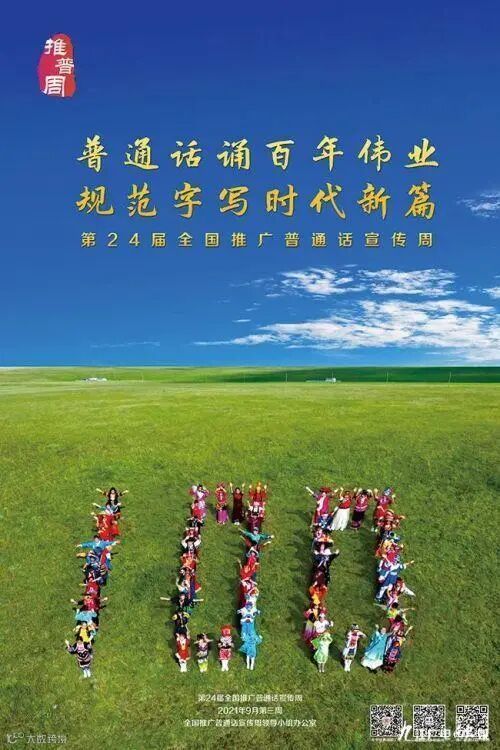 经国务院批准,自1998年起,每年9月第三周为全国推广普通话宣传周(简称推普周)。今年第24届推普周定于9月12日至18日举行,主题为“普通话诵百年伟业 规范字写时代新篇”。