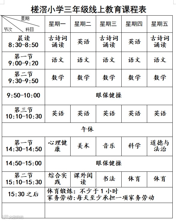 特殊时期,我们面临各种挑战,请大家不用过分担心,如果家里有特殊情况,不能按照课程表进行学习或无法顺利完成任务,家长可帮助孩子灵活调整学习时间。回校后老师将“零起点”跟进学生的学业和进行查漏补缺。