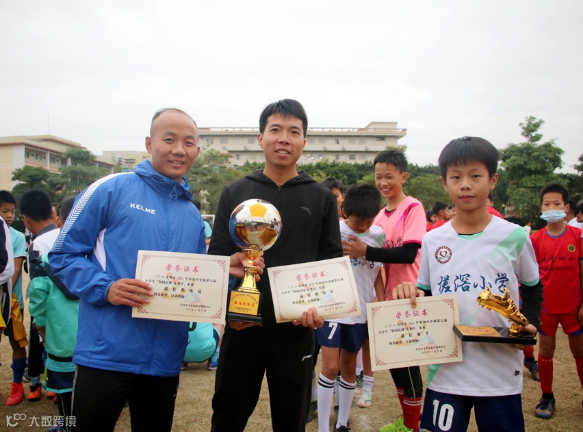 昨天下午,由中堂镇教育管理中心、中堂镇文广中心主办的2021年中堂镇小学生足球比赛圆满收官。经过为期七天的顽强拼搏,我校男子足球队以七战全胜,进36球的好成绩再次斩获全镇冠军。我校郑东林、王旭翔老师荣获“最佳教练员”,邓凯志同学荣获“最佳射手”荣誉称号。我校足球队在比赛过程中一路高歌,每场均以大比分胜出,比赛场面跌宕起伏,值得称赞的是队员们奋力拼搏、始终不放弃的战斗精神。