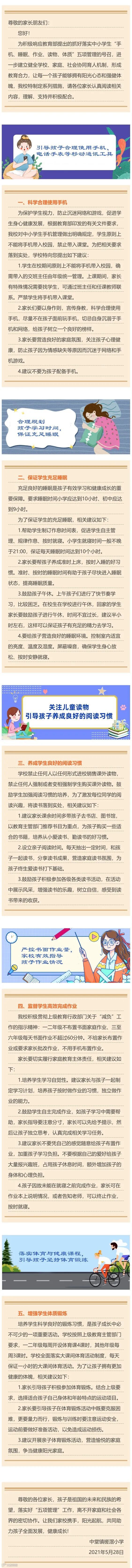 学校关于落实“五项管理”有关规定致家长的一封信