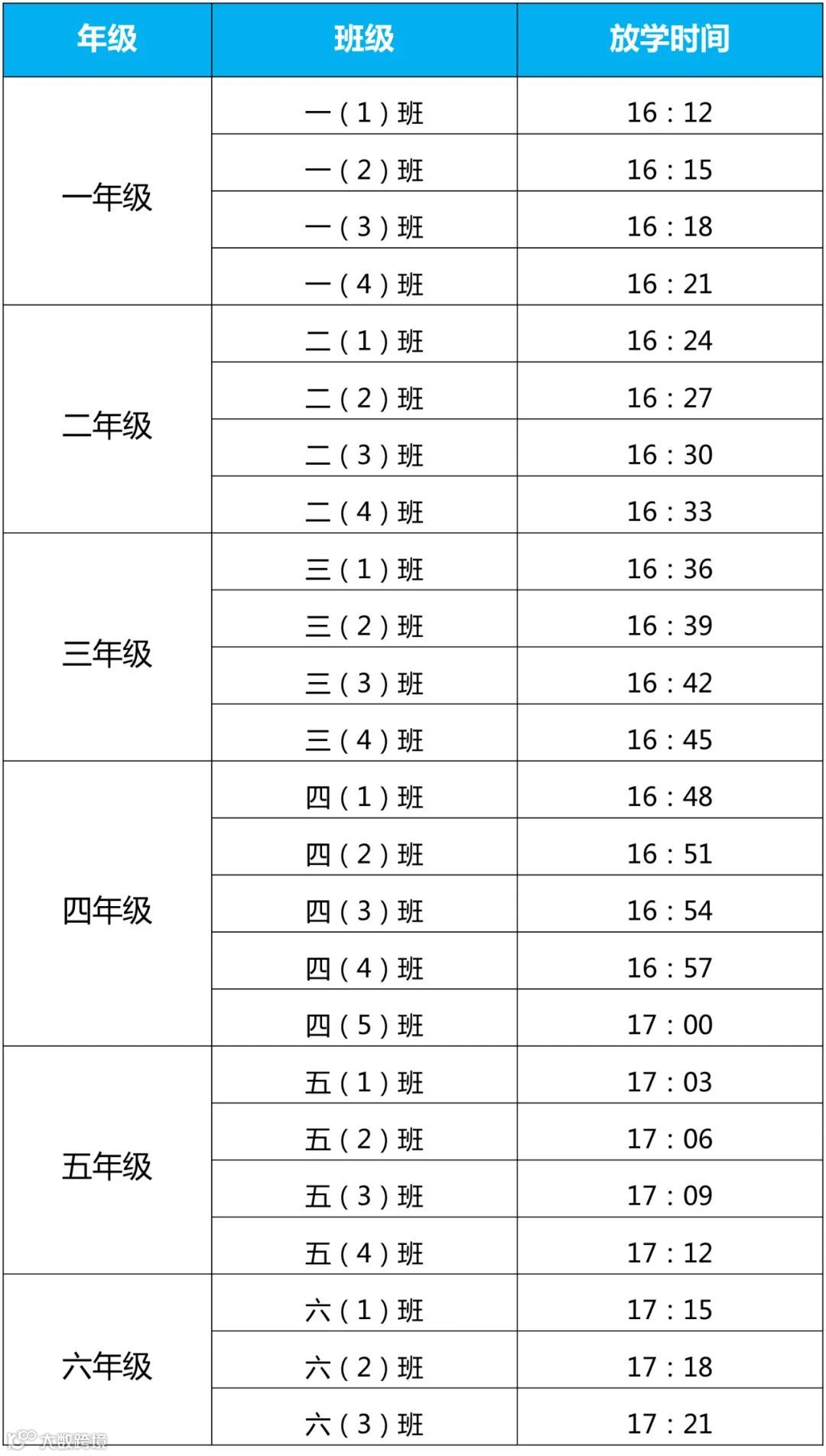 下午放学时间为: