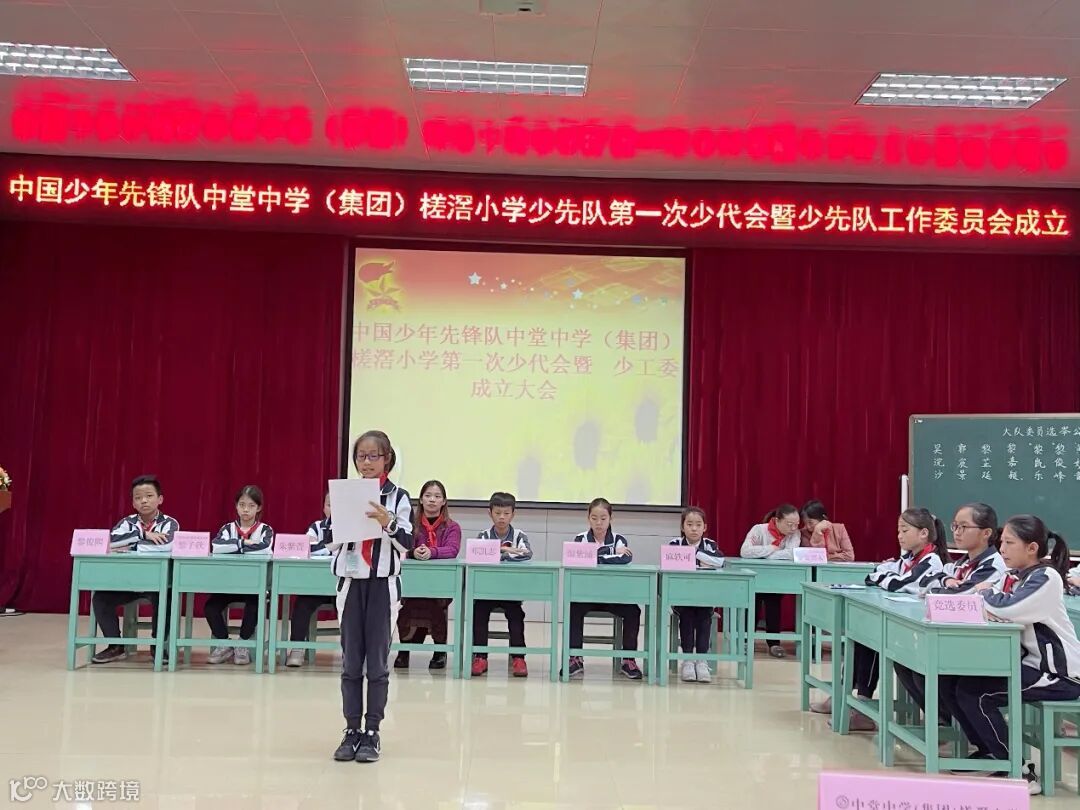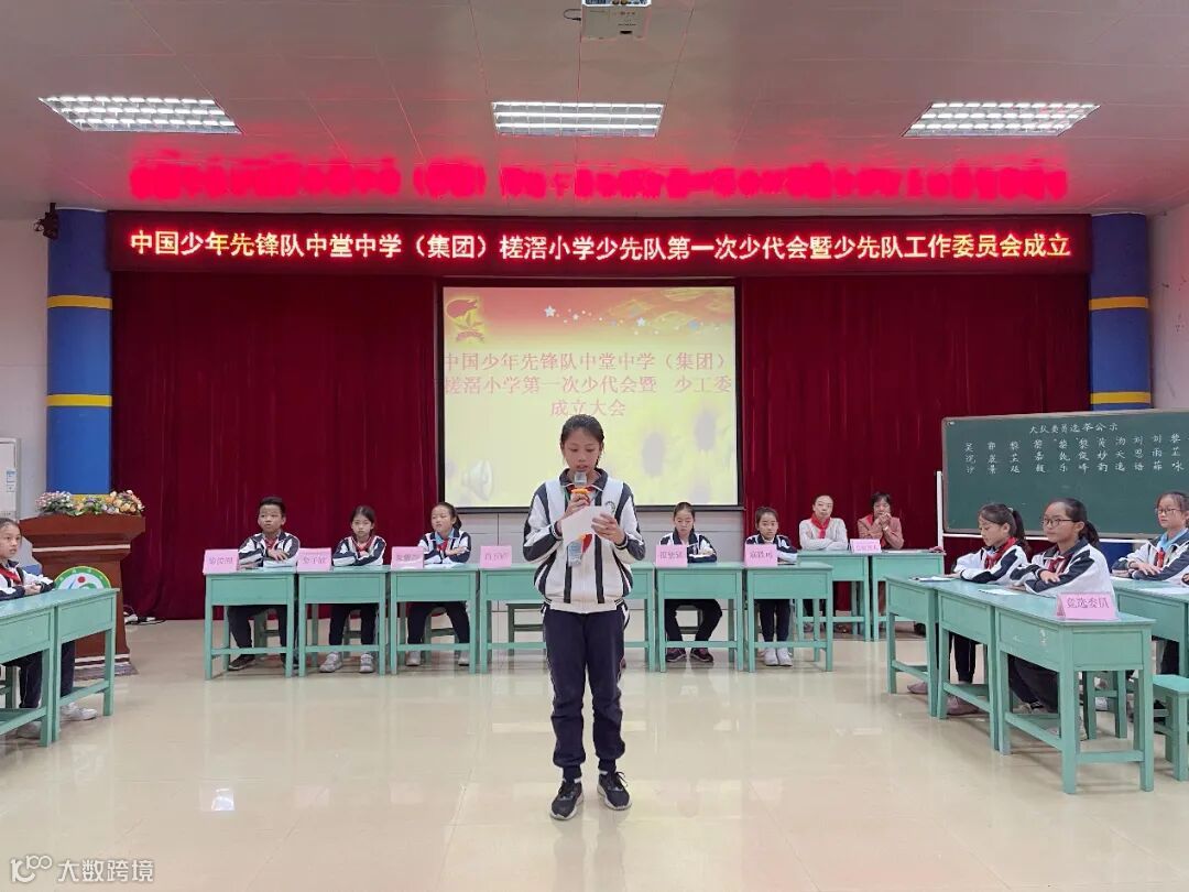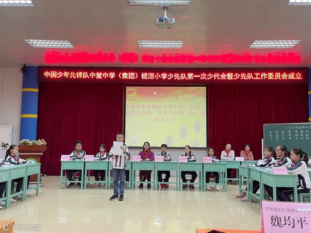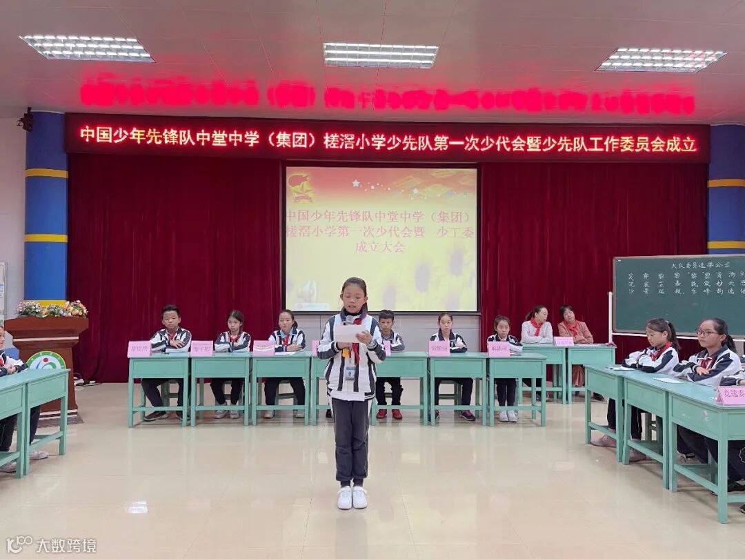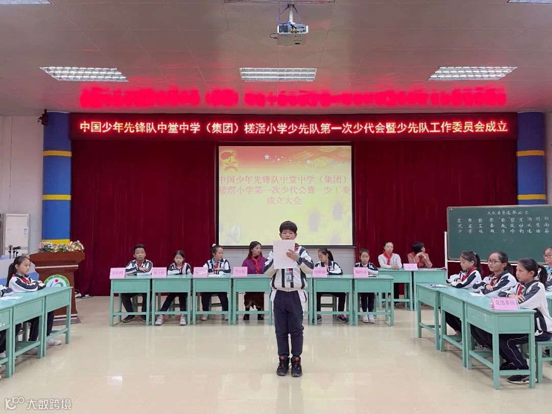 2020年12月09,中国少年先锋队中堂中学(集团)槎滘小学第一次代表大会暨少先队工作委员会成立仪式在学校阶梯室胜利召开!学校领导、中队辅导员代表、少先队员代表和家长代表参加了本次大会。
