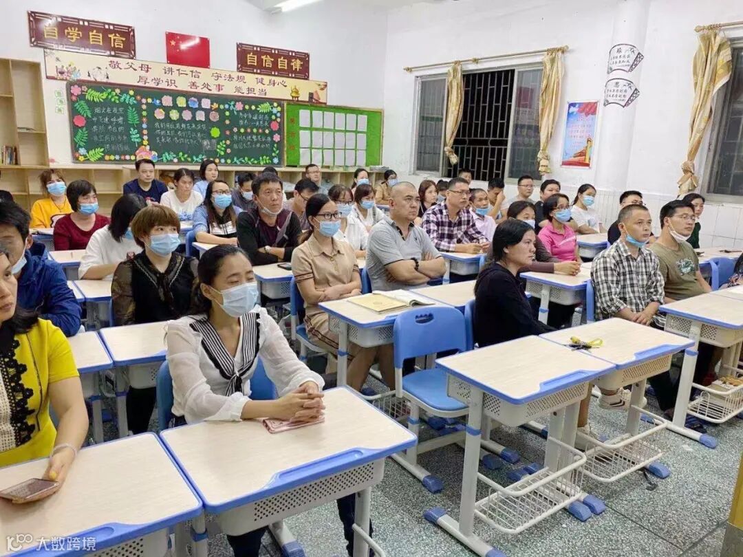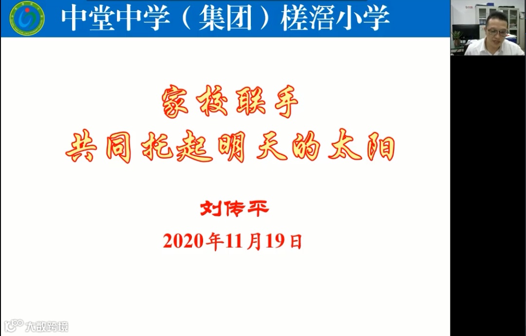 第一个环节:学校办公室主任刘传平对全体家长统一授课。刘传平主任总结学校开学以来师生的总体情况、存在的问题及结合中段测试情况如何提高孩子的综合能力等三方面进行授课。