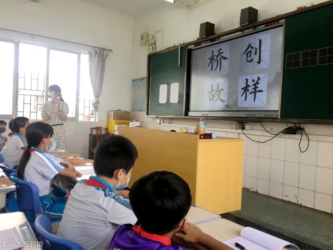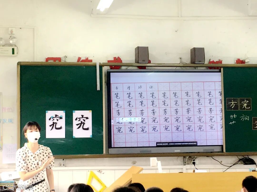 ▲邓璐琳老师在书法课上讲解字体框架结构