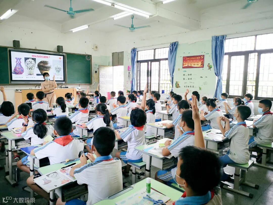 ▲罗文欣老师的美术授课中,同学们踊跃举手发言