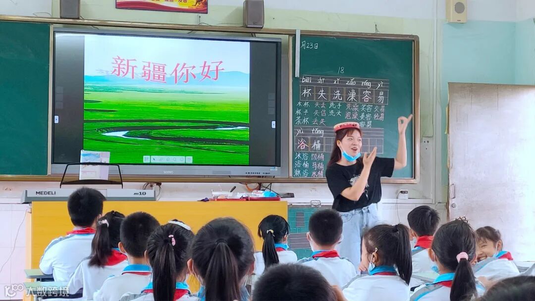 ▲同学们在音乐课中欣赏新疆美景