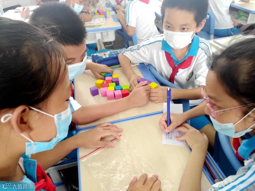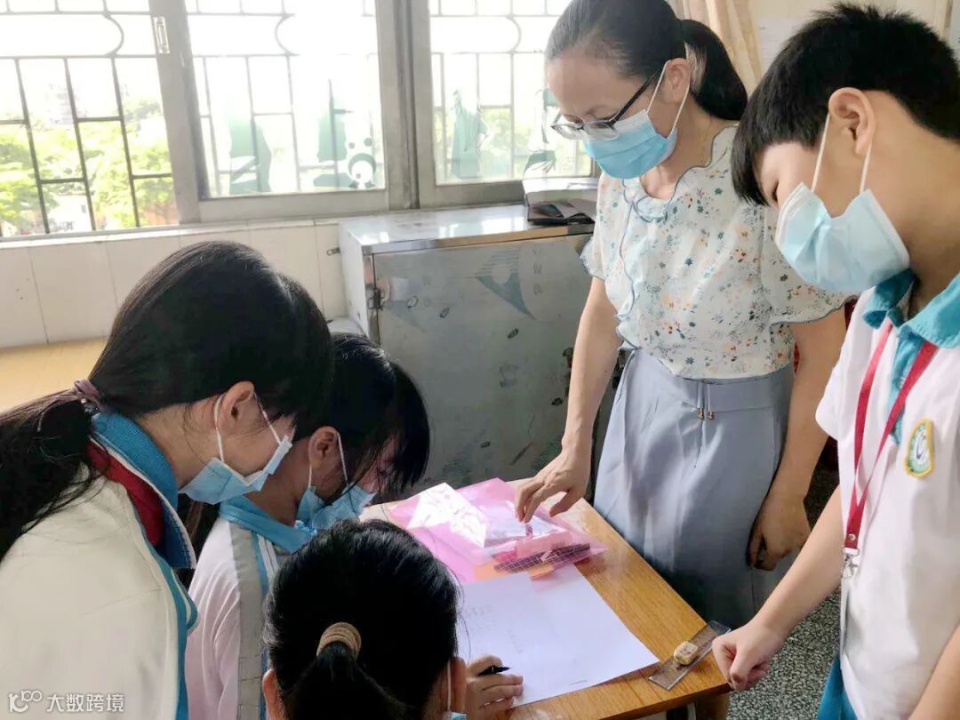 ▲数学课堂上,同们学进行小组合作,边操作边记录