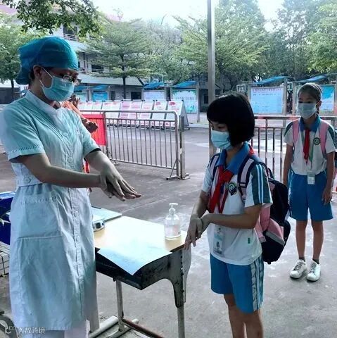 今天,孩子们又重返美丽温馨校园,读书声、歌声和笑声再次在校园里响起来。为了做好五、六年级学生返校,根据上级主管部门的要求,我校制订了详细返校工作方案,学生分时、分班错峰返校。学校进校大道布置了关于孩子们回校的各种指引,值日老师提醒孩子们全程佩戴口罩,人与人之间保持一米以上的距离,先后经过证件查验、体温测量、消毒洗手,体温无异常后,方可安全有序进校。家长送至校门口等孩子们进校园方可离开。亲爱的校长、老师们都在翘首相盼孩子们的归来。