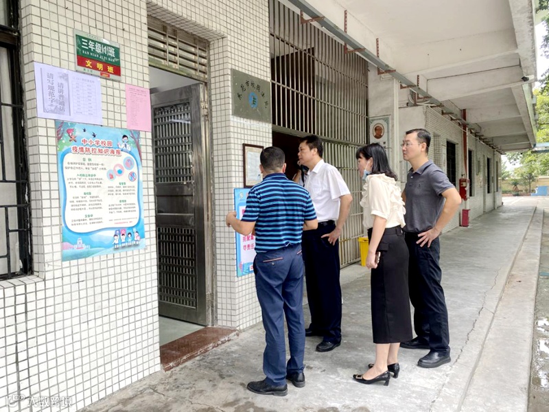 8月31日上午,中堂镇委书记叶沃昌,党委副书记张应钦,党政办主任黎剑华,教育管理中心主任黎美欢等一行到槎滘小学检查开学准备及疫情防控情况。魏均平校长引领并向领导们做学校防疫、学生返校等准备工作汇报。