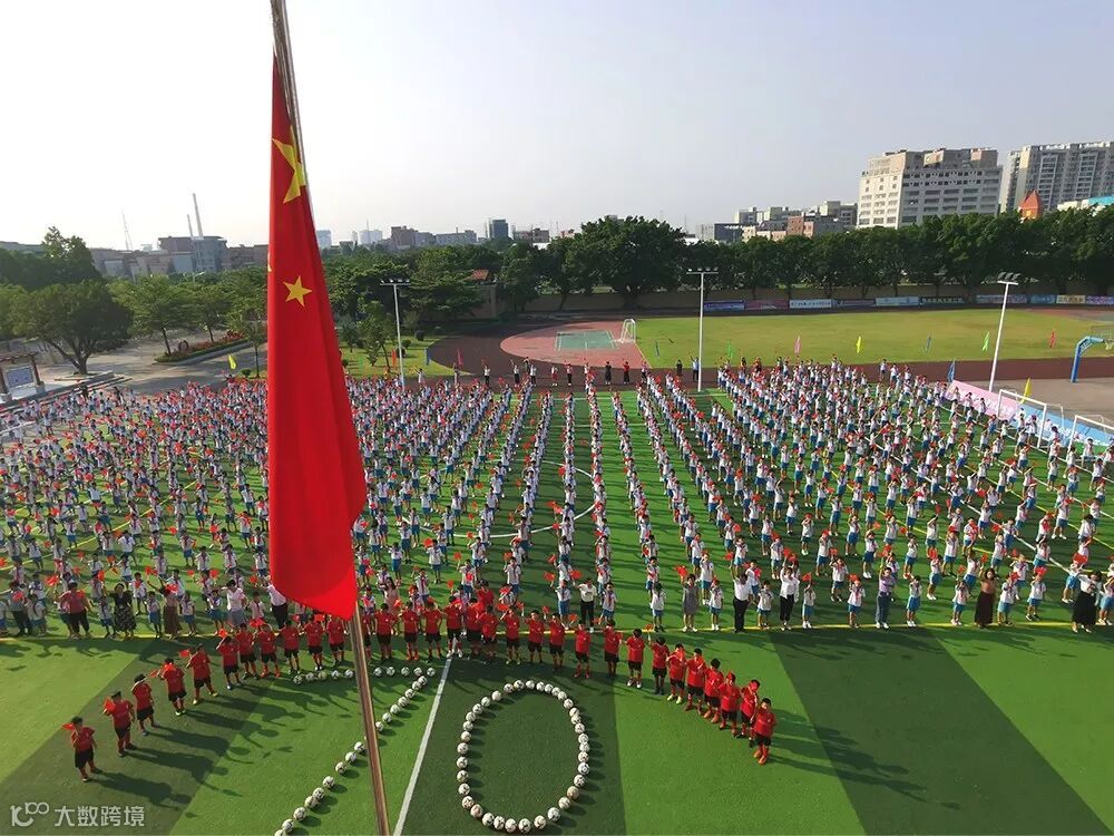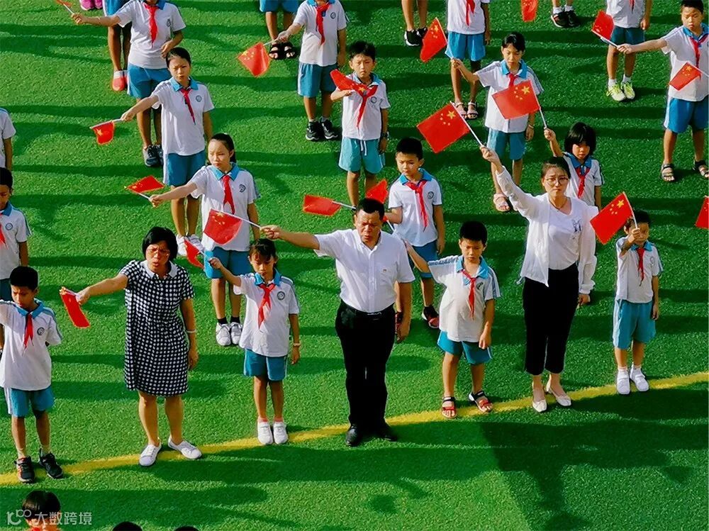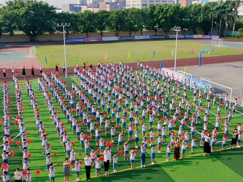 全体师生手持小国旗跟随着婉转动听的歌声节奏左右摆动