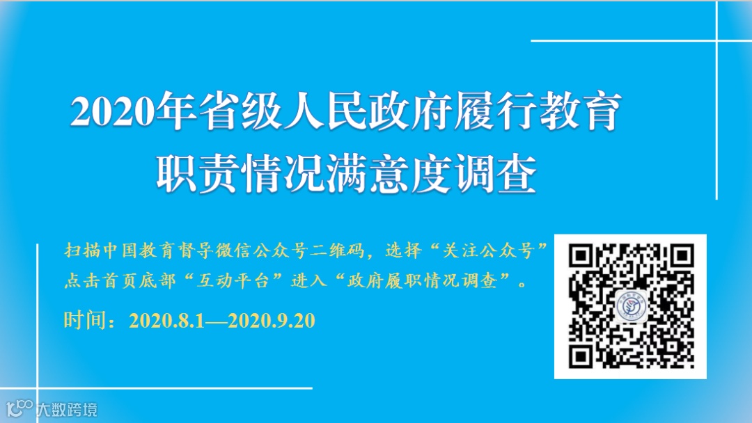 根据《关于发布国务院教育督导委员会2020年对省级人民政府履行教育职责情况满意度调查办法及二维码信息的通知》要求,现把政府履行教育职责信息发布在学校官网及微信公众号,协助国家顺利完成调查。请全体教职员工积极参与该项调查。