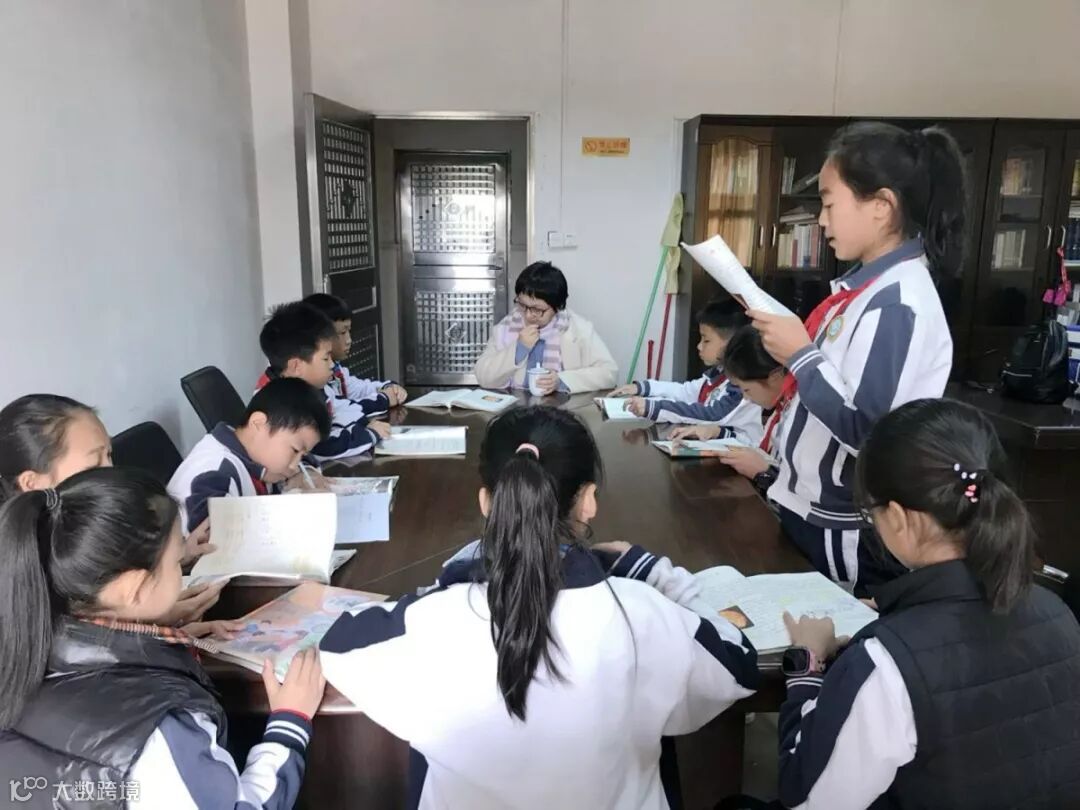 我校五年级学生在接受检查组的谈话和朗读检测