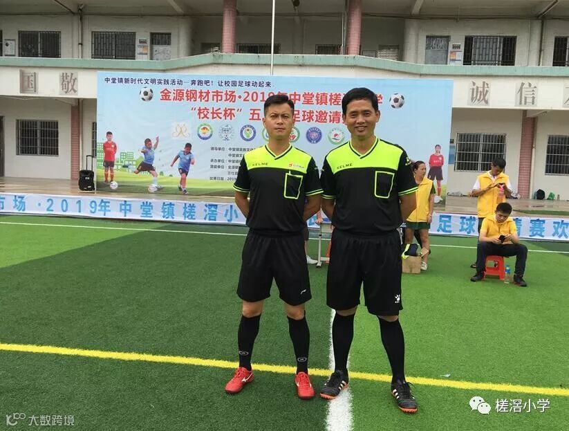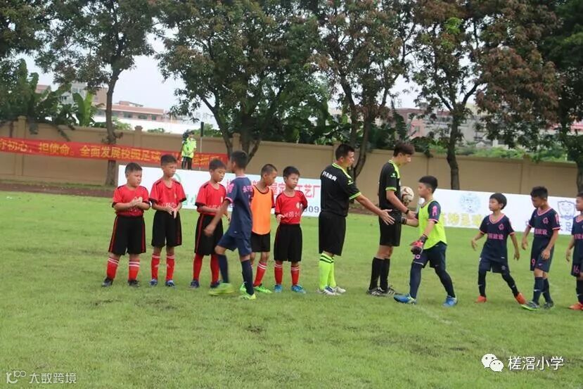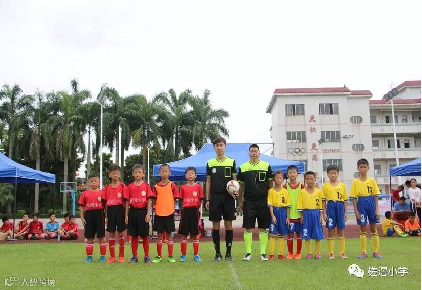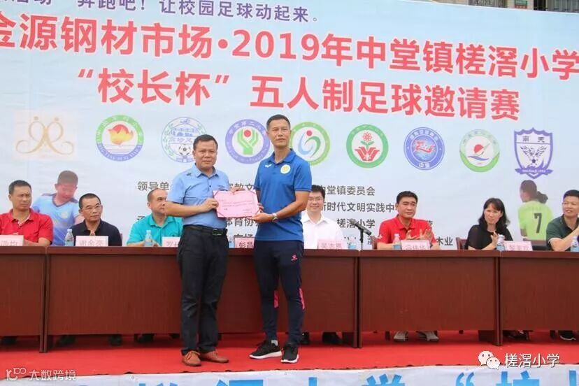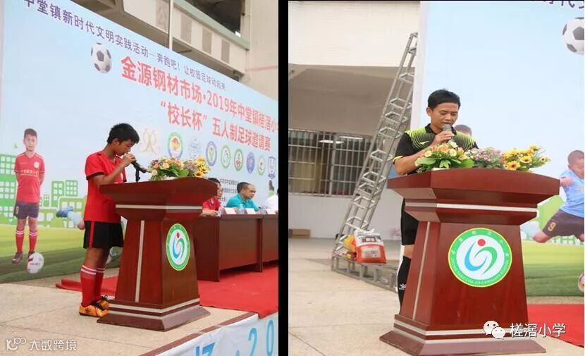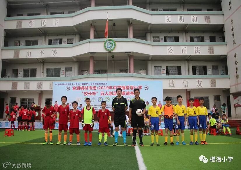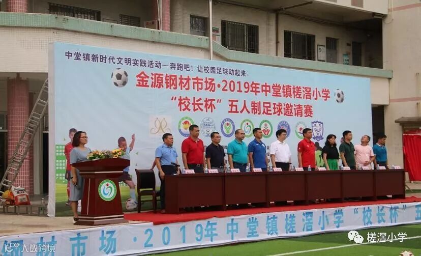 第六项议程是开球仪式,随后,由魏均平校长宣布本届比赛开幕。并在高年级同学的引领下,参会的领导嘉宾来到球场中间,为比赛开球,宣告金源钢材市场2019中堂镇槎滘小学"校长杯"五人制足球邀请赛正式拉开序幕。揭幕战是中堂镇槎滘小学和新塘永宁二小的比赛,伴随着裁判员的一声哨响,两队展开了激烈地角逐。