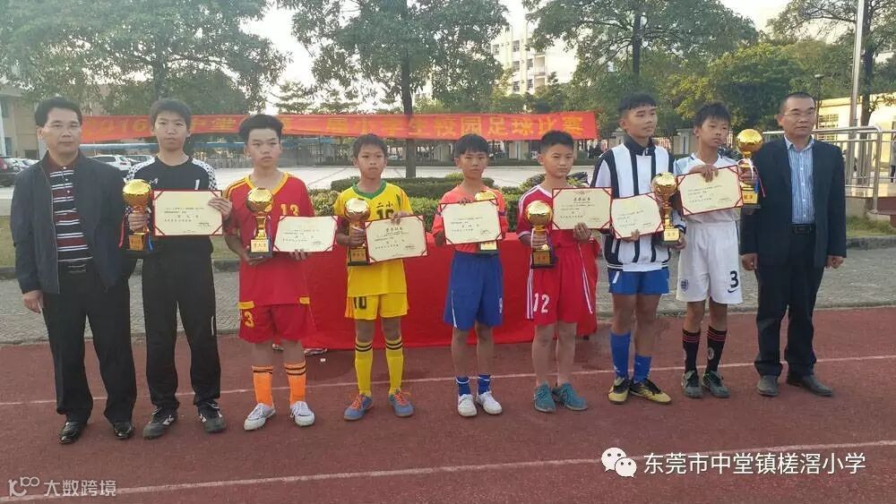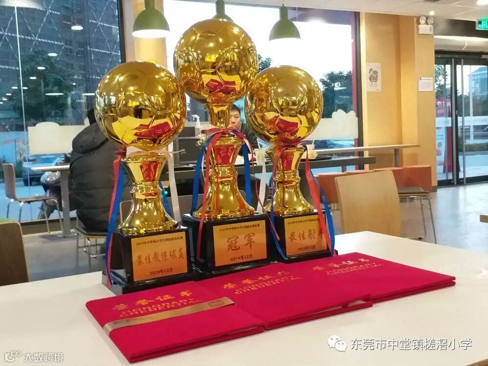 中堂中学教育集团槎滘小学2016年12月8日下午,期盼已久的中堂镇校园足球比赛在中心小学拉开帷幕,第一场比赛我校以7:2成绩开了个好头。本届比赛采用积分方式,经过六轮激战,我校以5胜1负的好成绩排在积分榜首,夺得本届比赛的冠军,黎子誉同学以射门6球的好成绩位居射手榜第一,获得本届比赛“最佳射手”,熊郁辉老师获得“最佳教练球员”等荣誉称号。