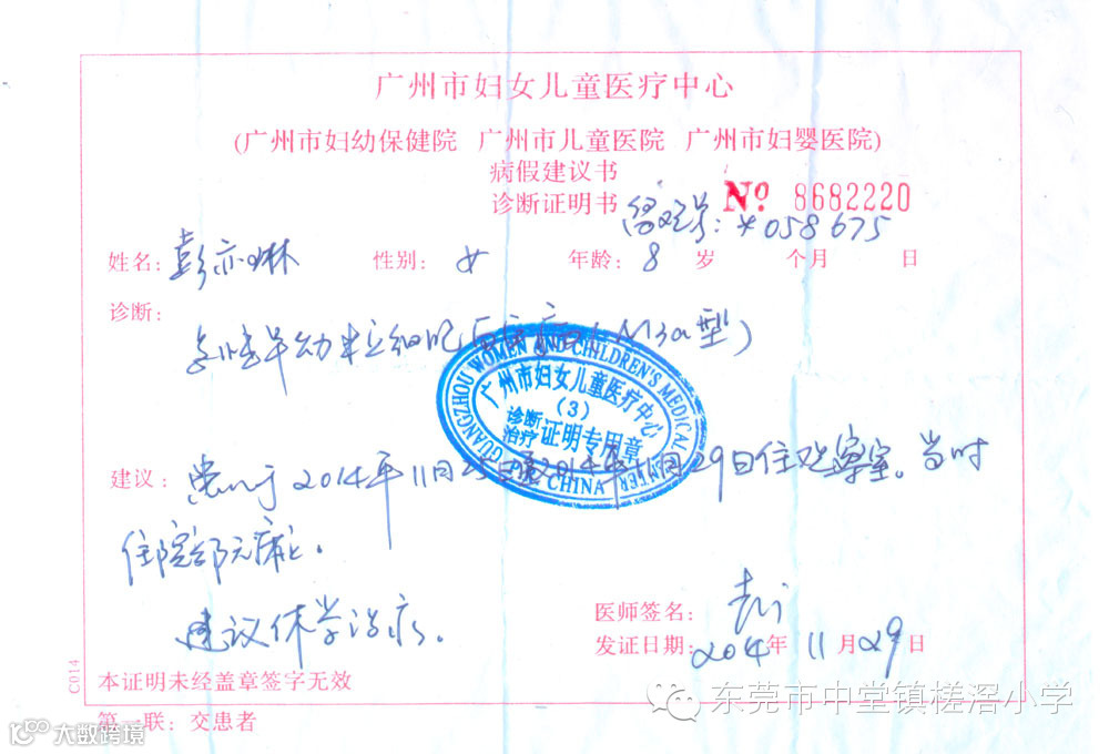 去年11月初,女儿彭亦琳先后有过两次发烧,头晕等症状,直到当月20日,出现牙龈红肿出血,到万江谷涌医院抽血化验,验血报告显示白细胞、红细胞、血小板减少,再到东莞市人民医院再次血常规检查,同样结果。第二天,我们决定带着女儿到广州市儿童医院详细检查。 11月29日,噩耗降临,广州市儿童医院确诊我女儿患了急性髓细胞白血病—M3型。为了节省成本,迫不得已带女儿回重庆老家治疗。