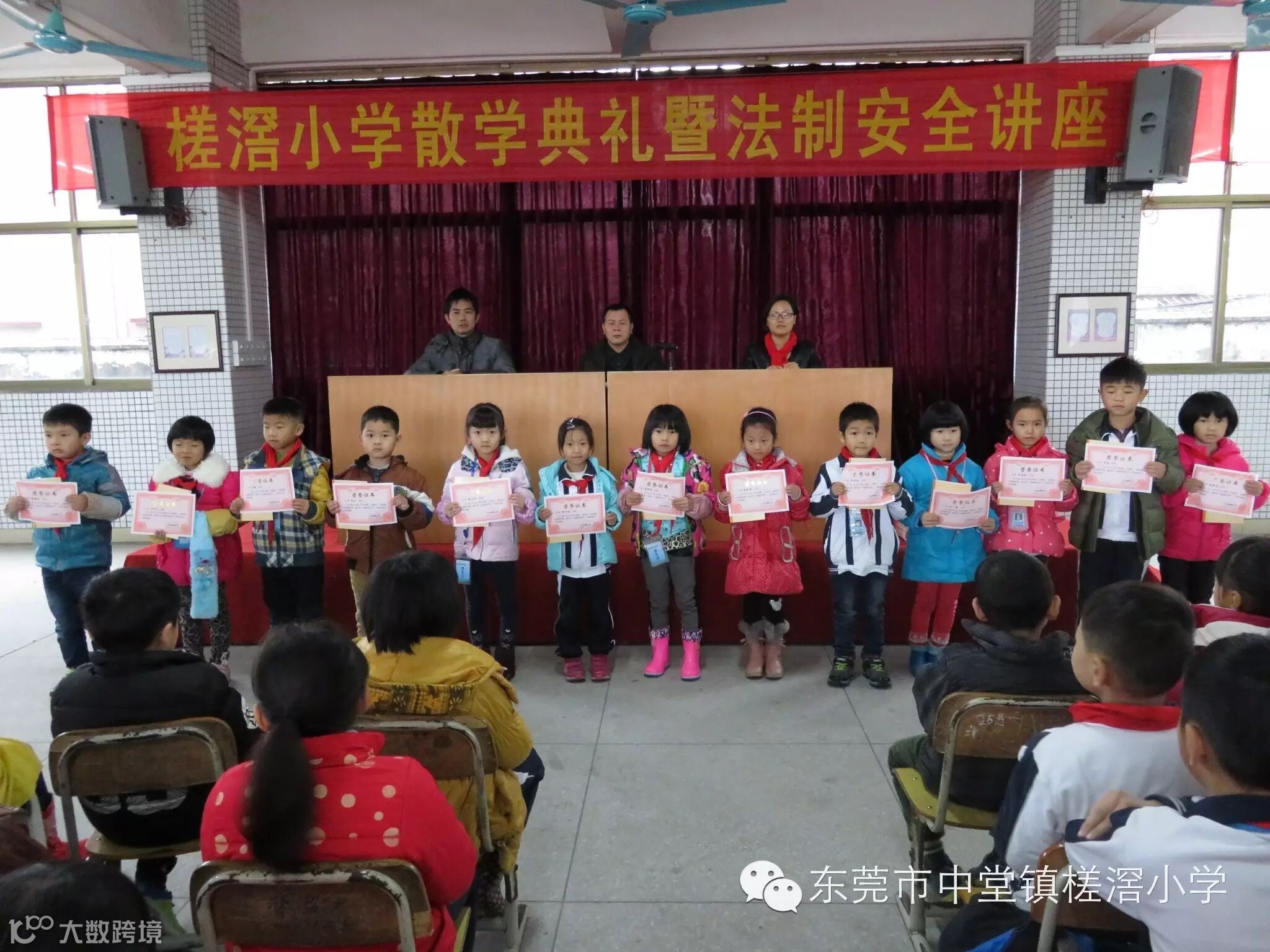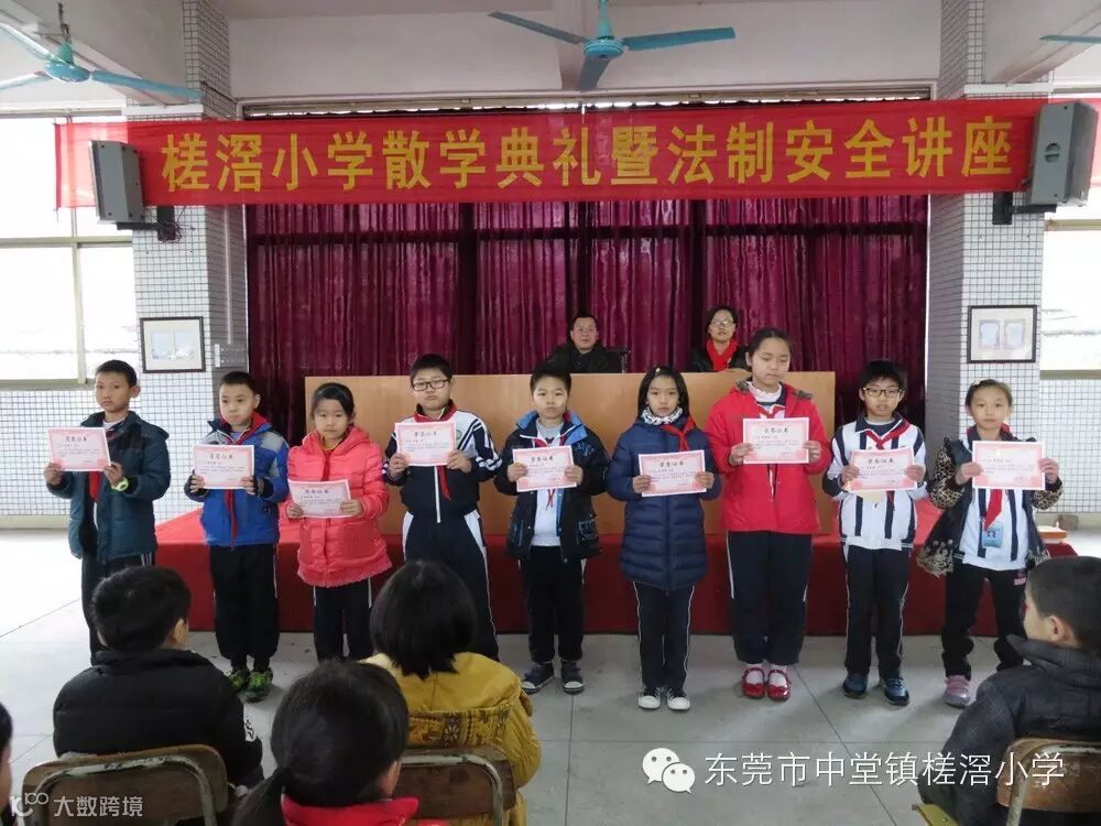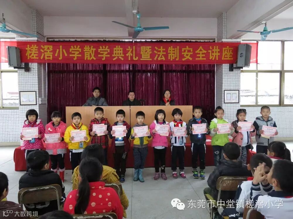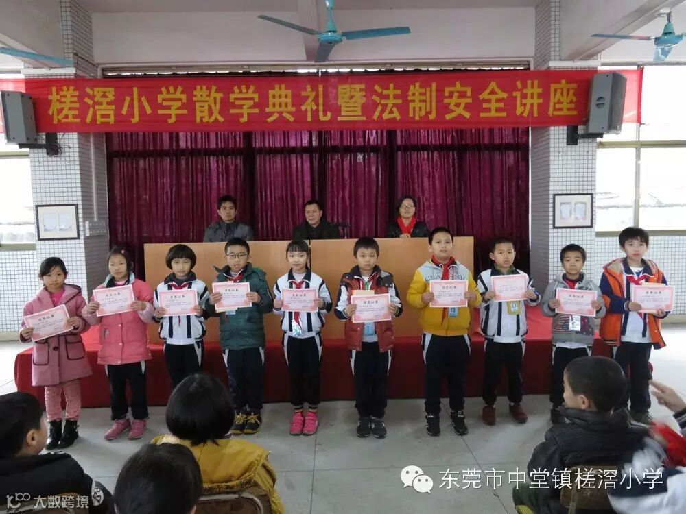 中堂中学教育集团槎滘小学2016年1月22日上午,槎滘小学在综合楼一楼大厅举行 2015-2016学年第一学期散学典礼暨法制安全。