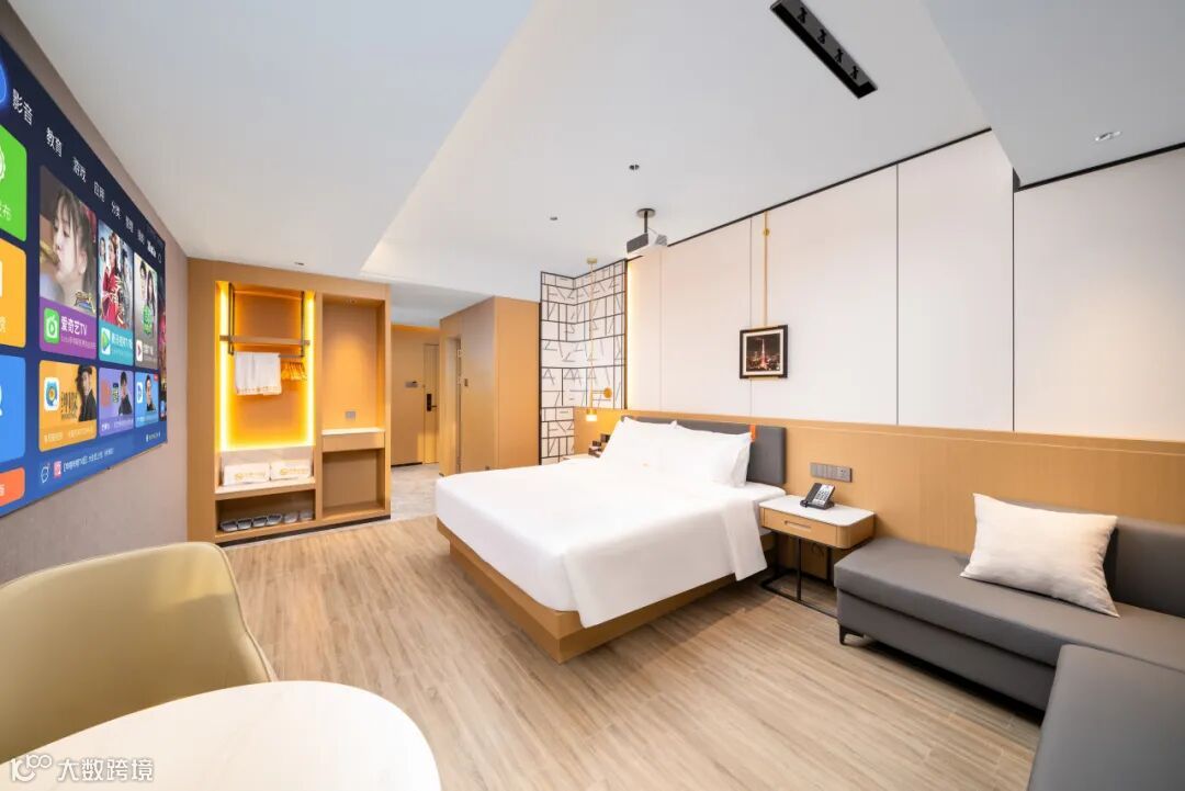 酒店客房设有豪华双床房、商务大床房、行政套房、豪华麻将房等多种智能房型任您选择;宾客可通过小度智能声控系统轻松操控灯光、空调、电视以及窗帘等设备,从而营造出理想的睡眠环境。