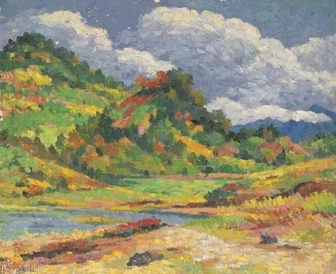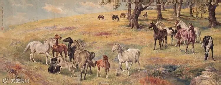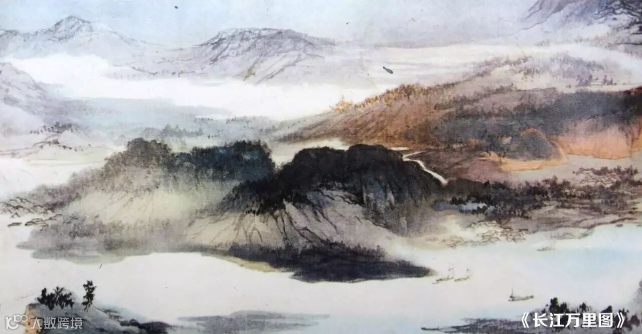 ▲当远走海外以后,张大千开始创新,他在泼墨与没骨画法的基础上,吸取了西方的现代艺术,创造了泼彩法,形成了墨彩交辉的半抽象的境界与情调,开拓出一种雄奇壮丽的新风貌。其中以《长江万里图》为代表。