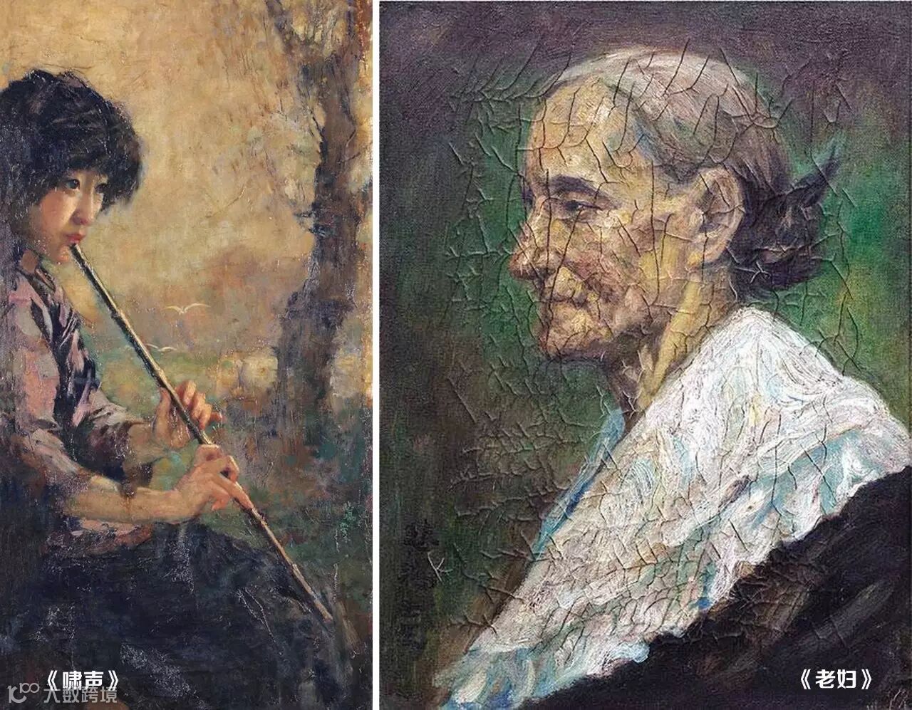 ▲他提倡和精通欧洲油画及绘画写实技巧,创作了《老妇》、《箫声》等作品及近千幅素描。