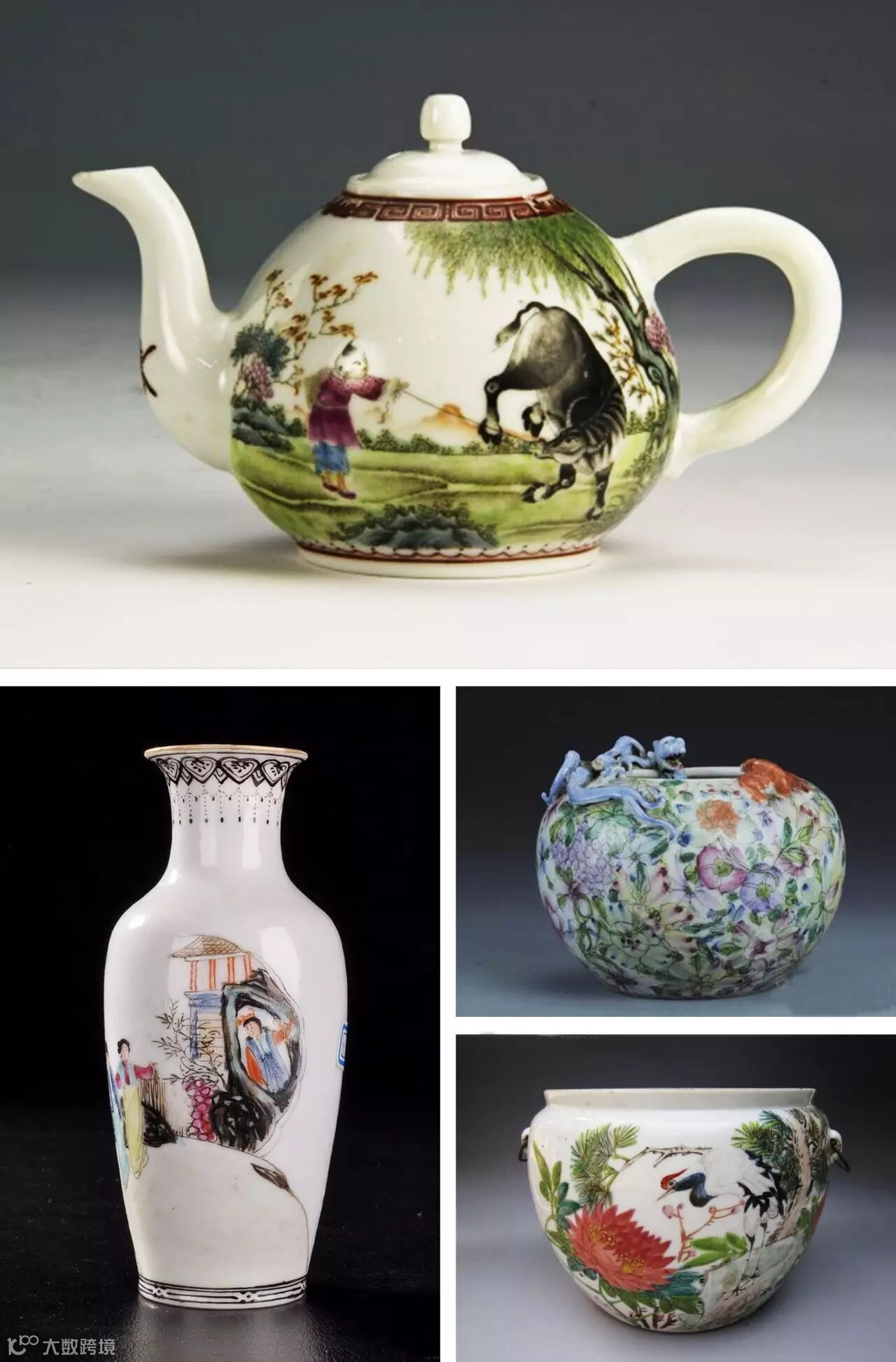▲民国时期景德镇窑生产的浅绛彩、“新粉彩”瓷器