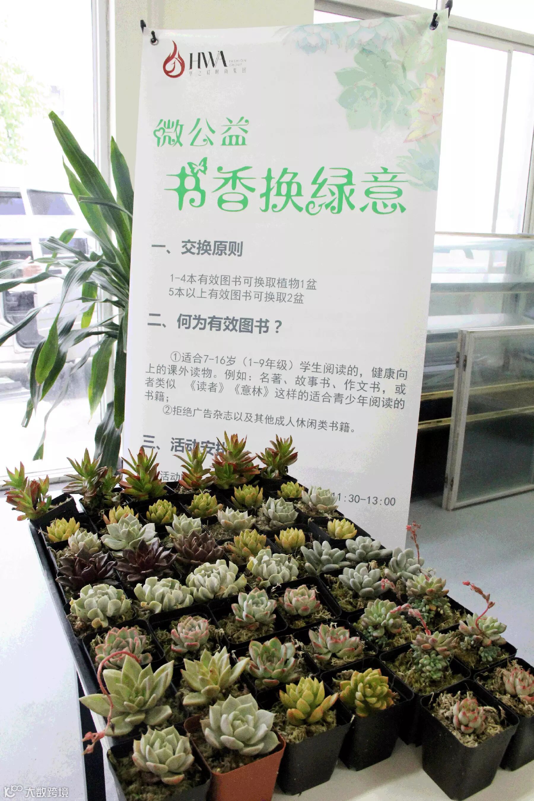 这是集团花艺俱乐部组织的微公益活动,倡导大家把闲置的、适合青少年阅读的课外书籍捐赠出来,俱乐部则以萌萌哒“肉肉”赠送给捐书者!