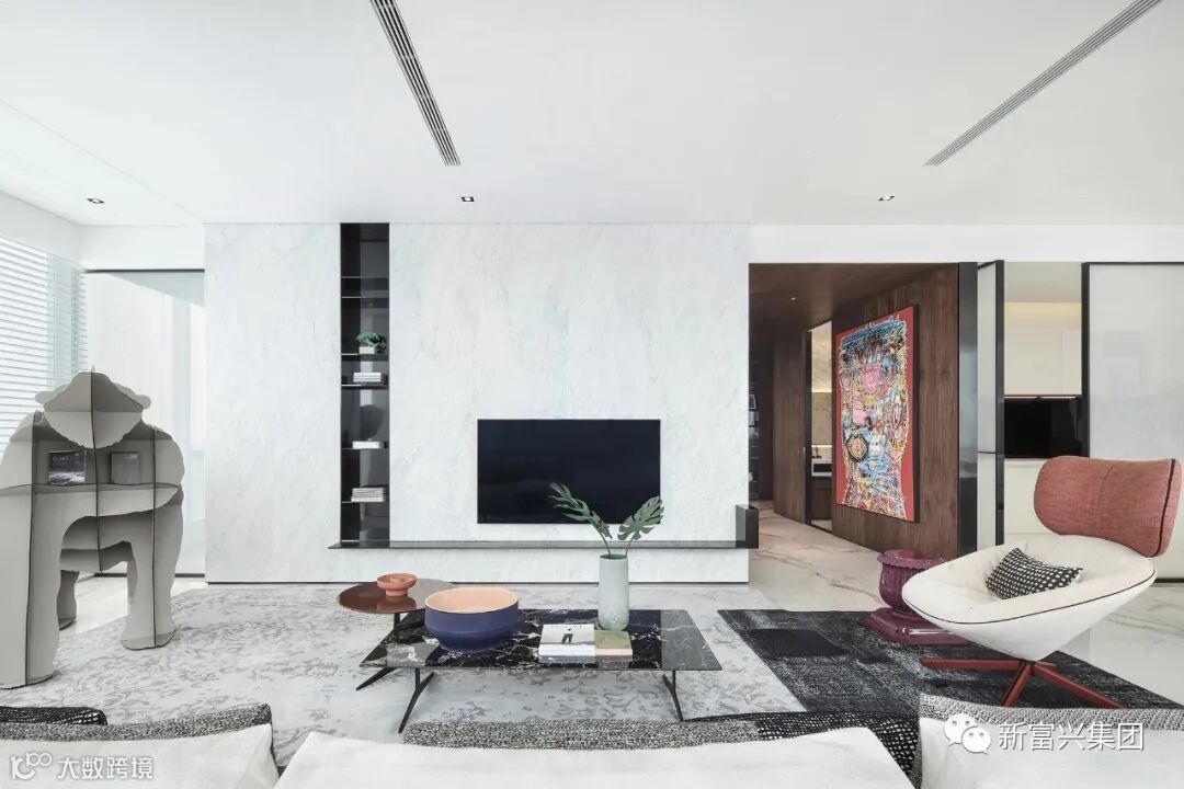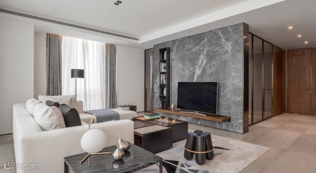 在清水玉套房中,客厅整个空间除地板与墙面,再难寻得装饰的痕迹。