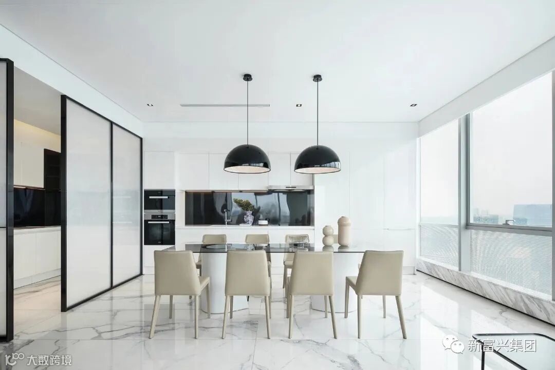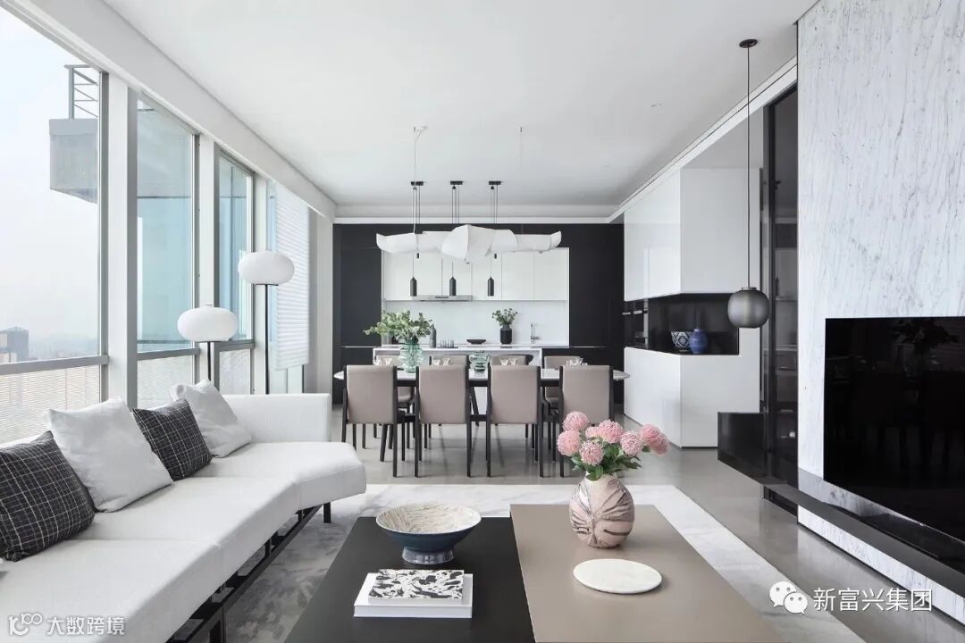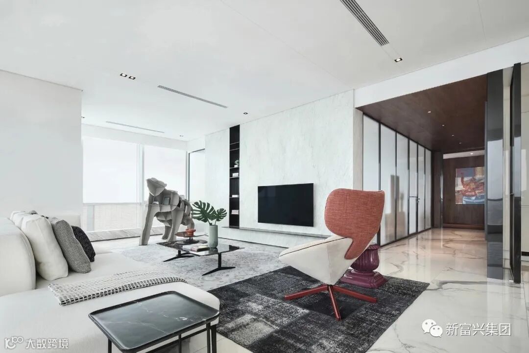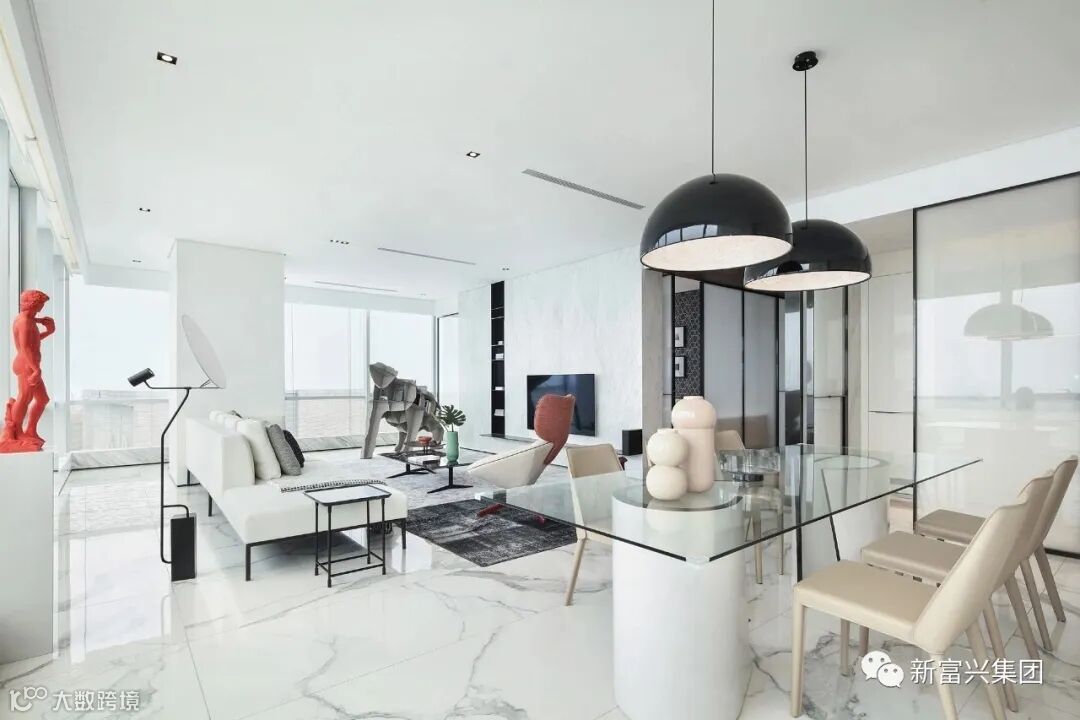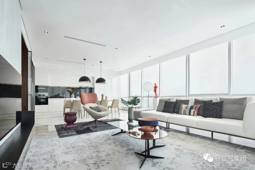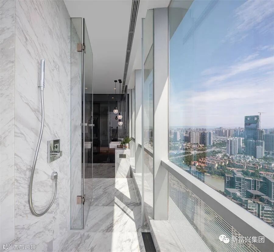 340㎡翡冷翠样板间中,最大面宽达11米,180度转角采光。立于器件,享受同纽约ONE57近似的城市峰景;200㎡样板间,25米开窗面,270°无敌视野,胸怀契阔,俯瞰锦江与天府大道交汇,自然与人文的脉络
