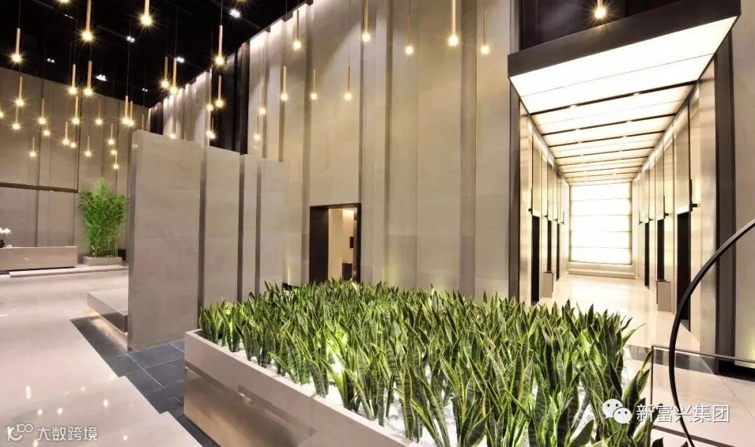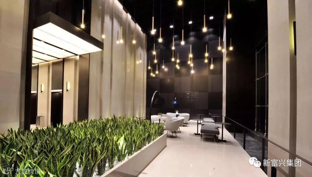 花漾锦江全玻璃幕墙配置,最大限度引入自然光线入户,又以人工建造石材台阁、摆布灯饰玻窗,用强烈的美学语言将两种光源利用到极致。
