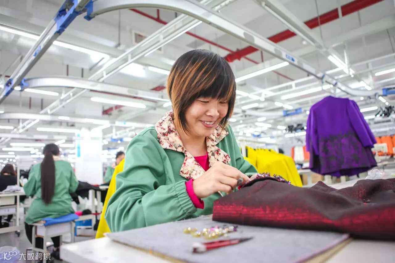 已经四十多岁的王惠芬有着11年的装袖经验,当我们经过生产车间时,她正在装一件大衣的袖子,车缝、拉皱、修袖笼等一系列动作在她手中娴熟利落地进行着。而完成这样一次装袖,一共要经过27道工序,1298个动作,缺一不可。
