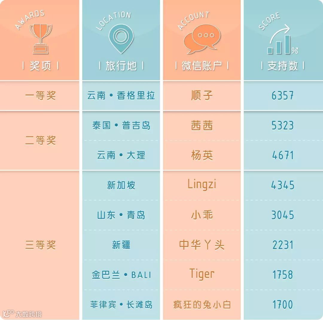 旅途美好,积极分享将美传递给大家的行为更美好!微信服务平台“HWA华之毅时尚” 必需对其进行嘉奖,华丽丽的获奖名单出炉啦: