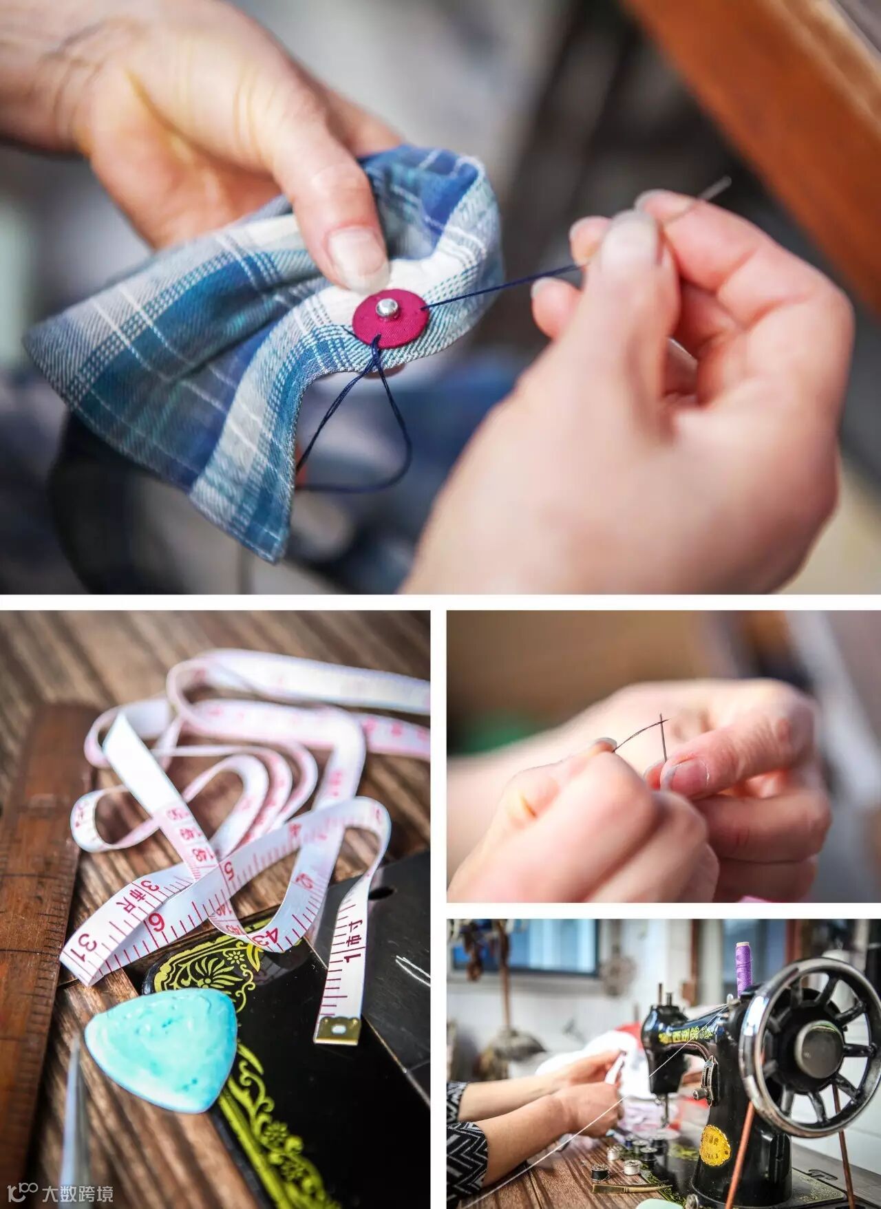 记忆中的这双手,有年岁打磨出的划痕般的粗糙以及暗沉的颜色,还有啊,就是沾染划粉的彩色颗粒。母亲缝制扣子、剪裁衣服样样出色,每次我都喜欢站在边上看着她拿着针线,静静地穿梭……