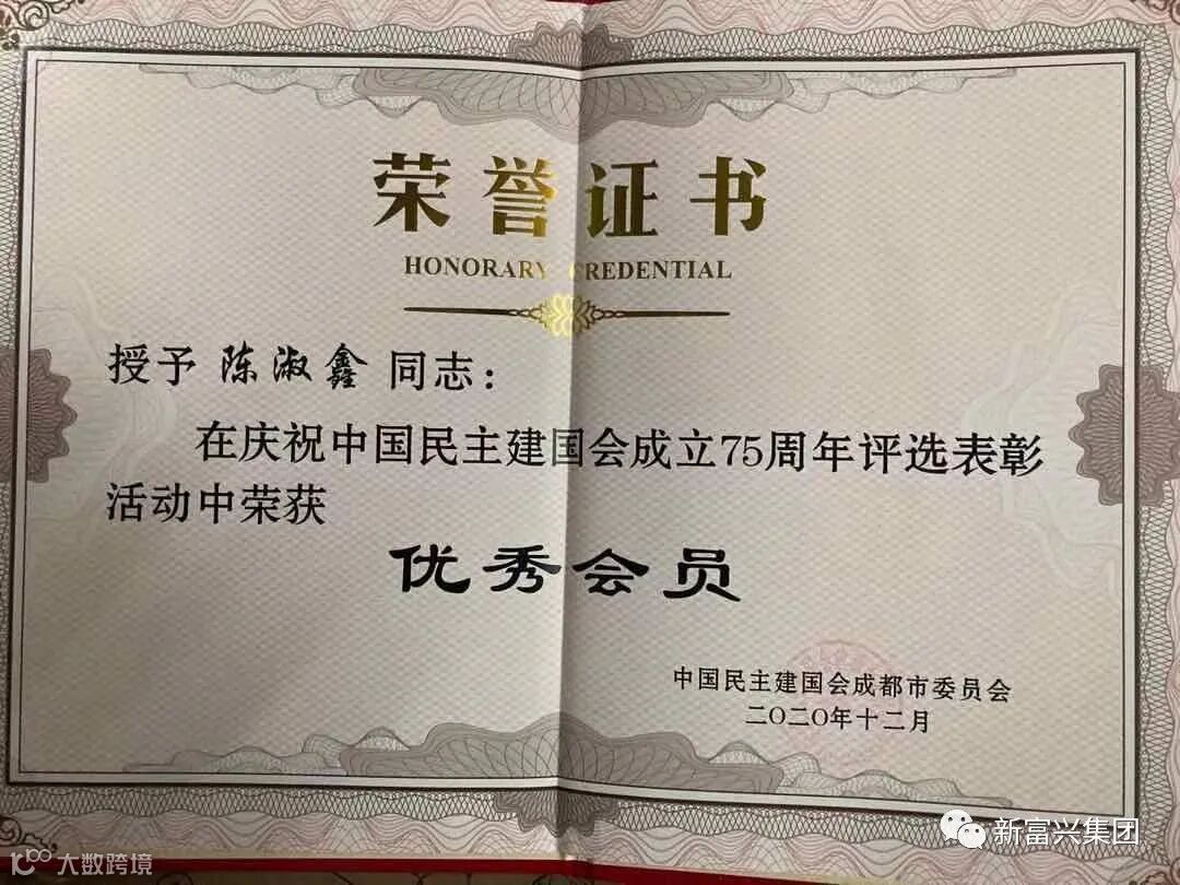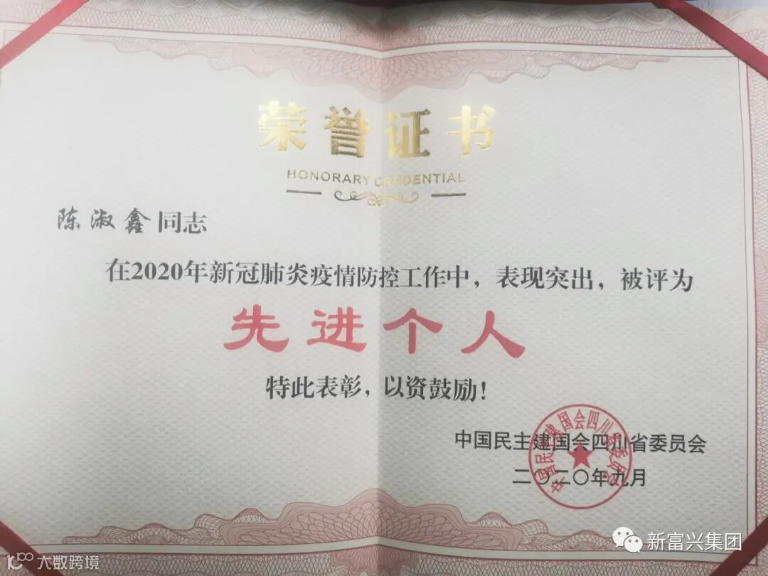 新富兴集团副董事长很荣幸被四川省民建表彰抗疫“先进个人”成都市民建表彰“优秀会员”