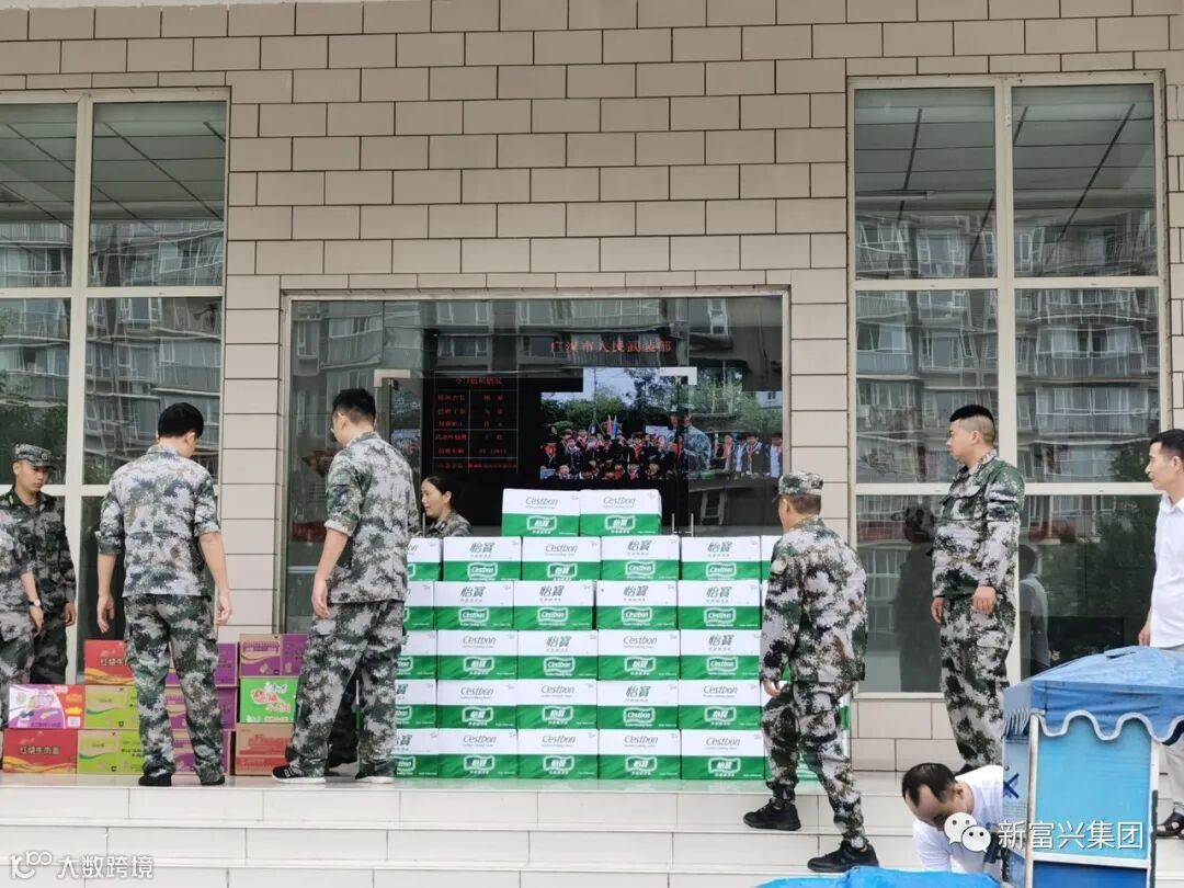新富兴集团向奋斗在广汉一线的防汛工作人员送去方便面、避暑饮料、避暑药品、矿泉水等慰问物资绵薄之力助力广汉防汛工作,向奋斗在一线的广汉防汛工作人员致敬。