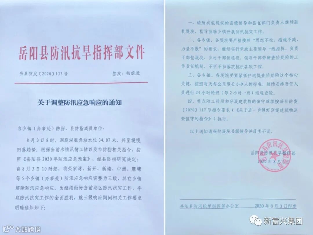 新富兴集团旗下岳阳珑瀚实业有限公司慰问一线防汛工作人员