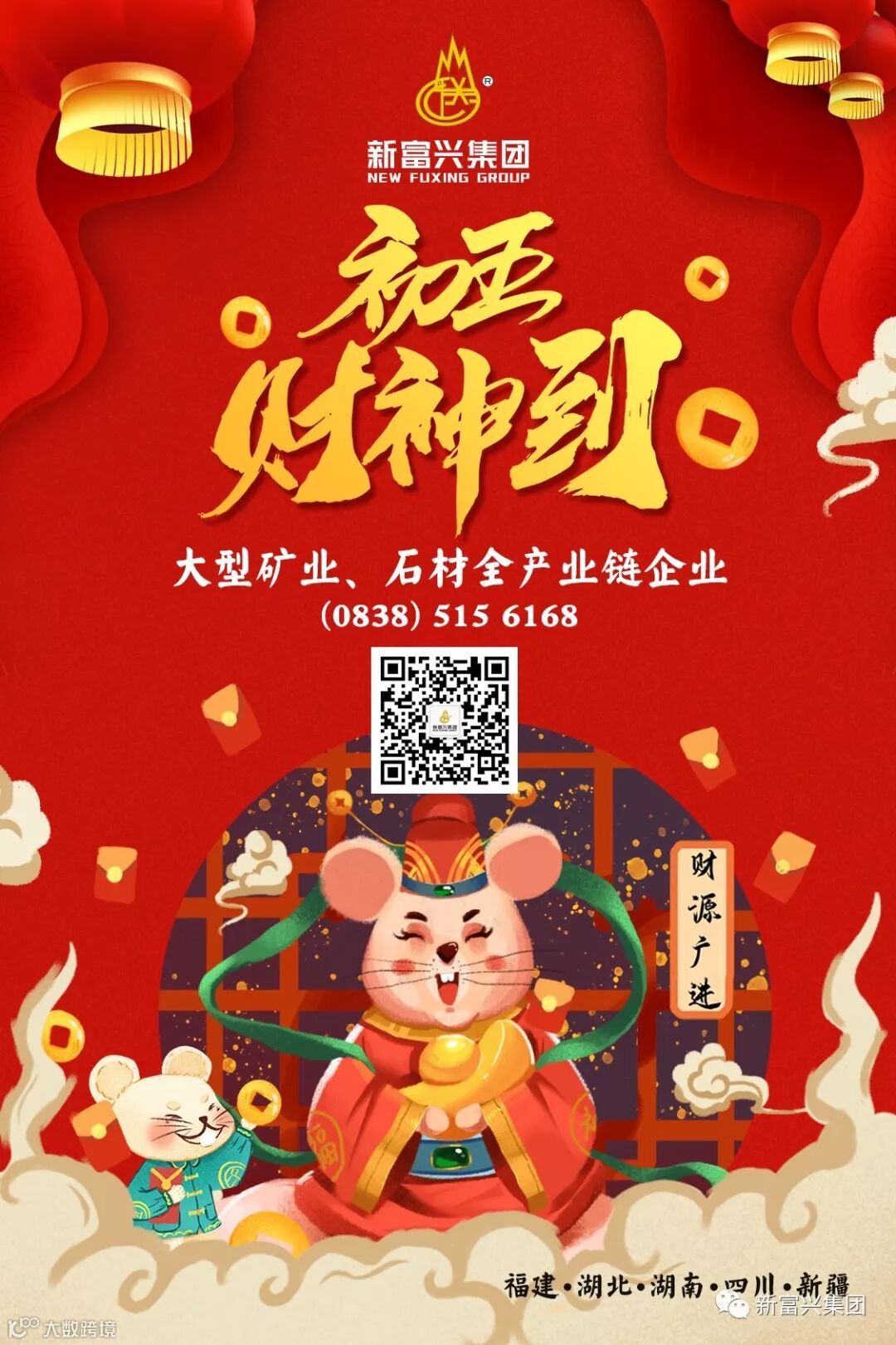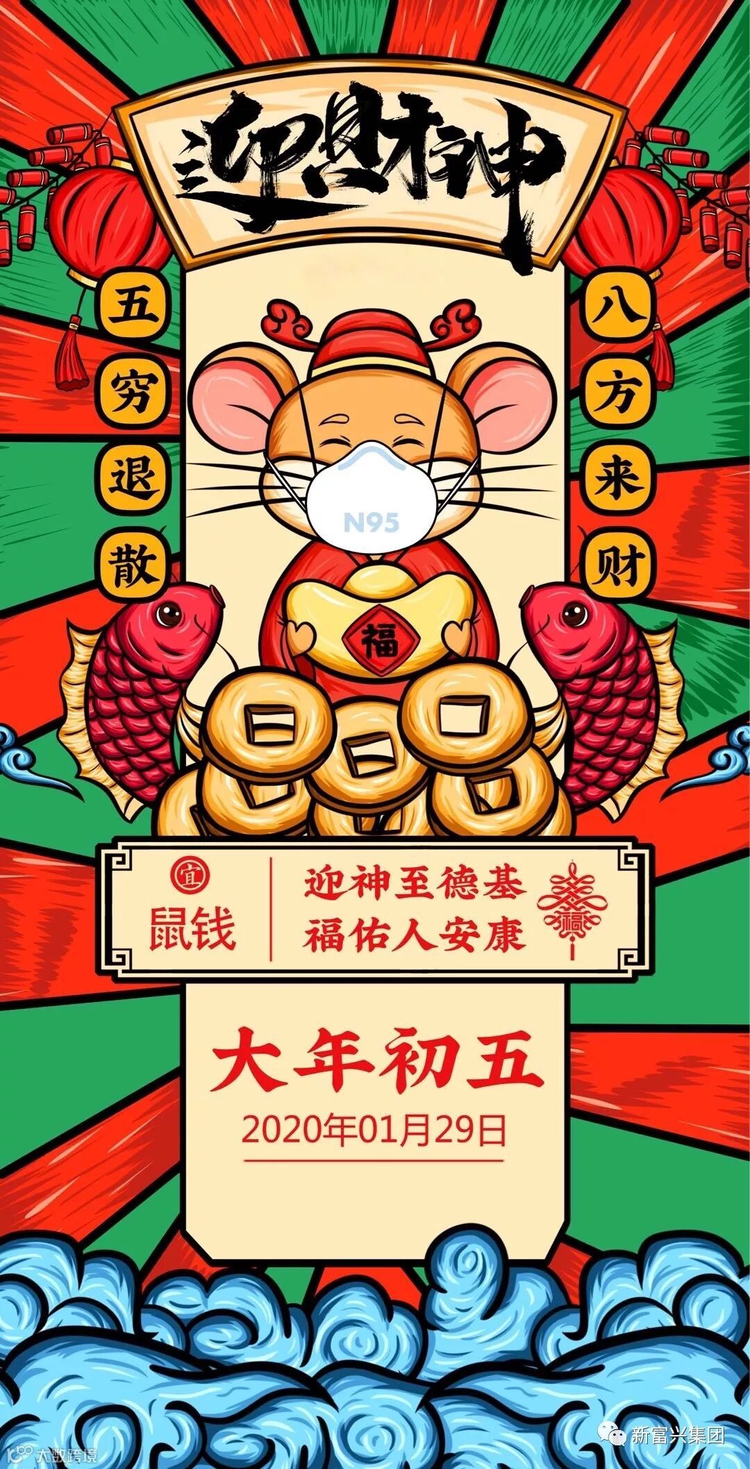 大年初五,艮牛耕春。五路接财神,东西南北中,财富五路通。