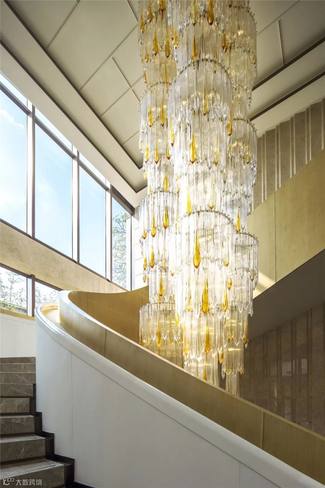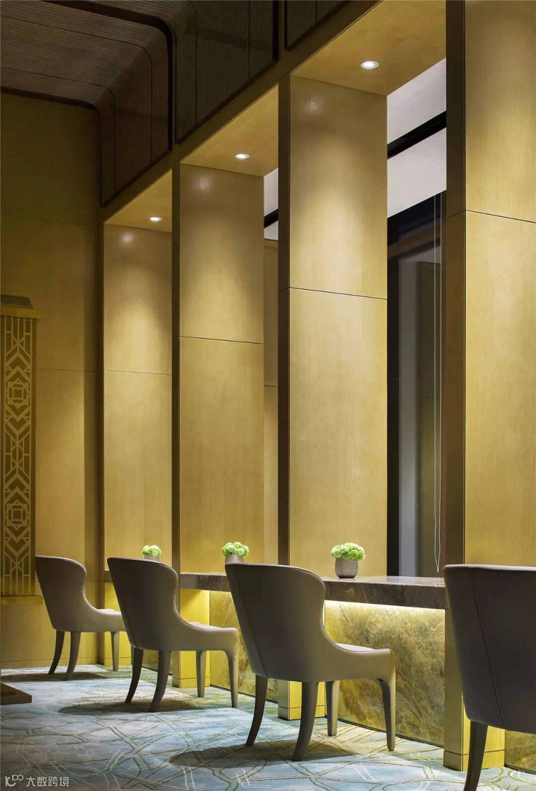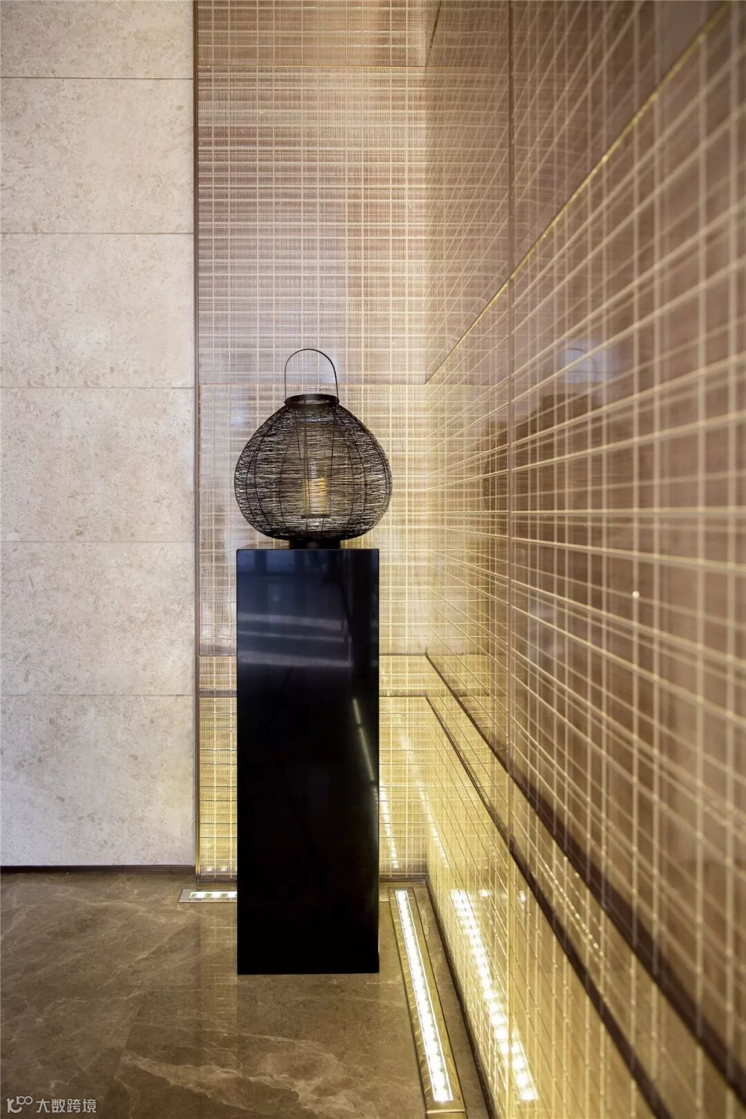 石材选材:室外黄金麻花岗岩;室内玛瑙玉、亚马逊绿石材、古堡灰石材