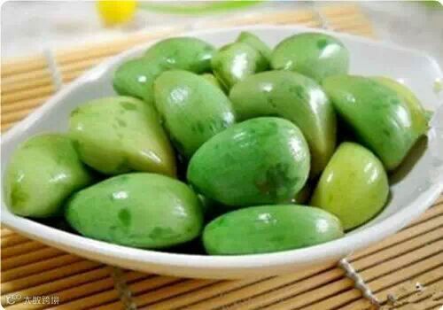 翡翠碧玉腊八蒜:泡腊八蒜是北方,尤其是华北地区的一个习俗。顾名思义,就是在阴历腊月初八的这天来泡制蒜。其实材料非常简单,就是醋和大蒜瓣儿。做法也是极其简单,将剥了皮的蒜瓣儿放到一个可以密封的罐子,瓶子之类的容器里面,然后倒入醋,封上口放到一个冷的地方。慢慢地,泡在醋中的蒜就会变绿,最后会变得通体碧绿的,如同翡翠碧玉。