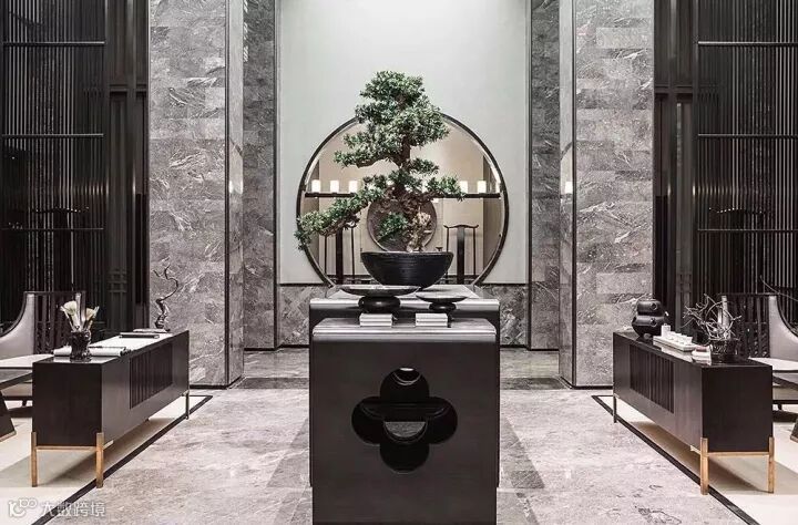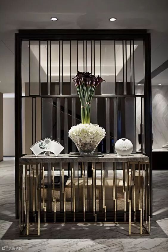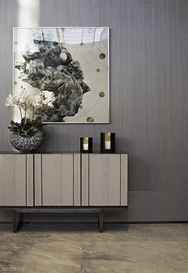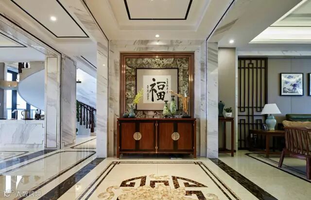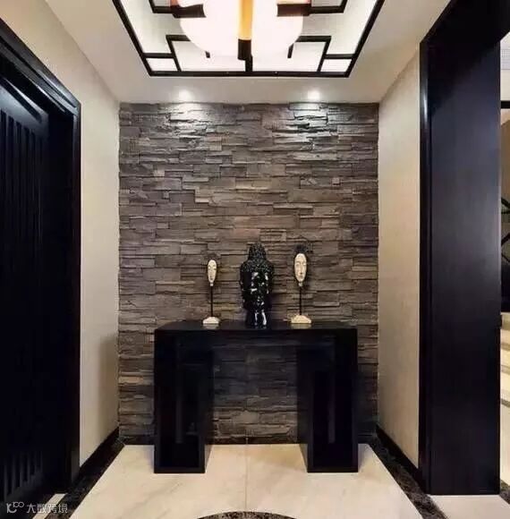 你只需屏息凝神,静静体会。中式玄关古朴、低调,遵循禅意之道木杉隔断,似隔非隔,古朴雅致。这种玄关隔断,可以区分空间功能,但却又不阻碍视线。石材研习社(IDstone5A)