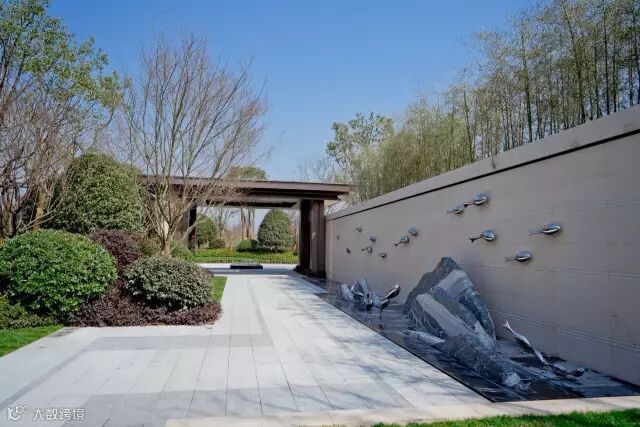 设计团队着力寻找本土传统文化元素同景观设计的完美融合,将良渚人对水、对鱼的这份眷恋浓缩提炼,以鱼跃水景、波纹片石等细节巧妙点缀。