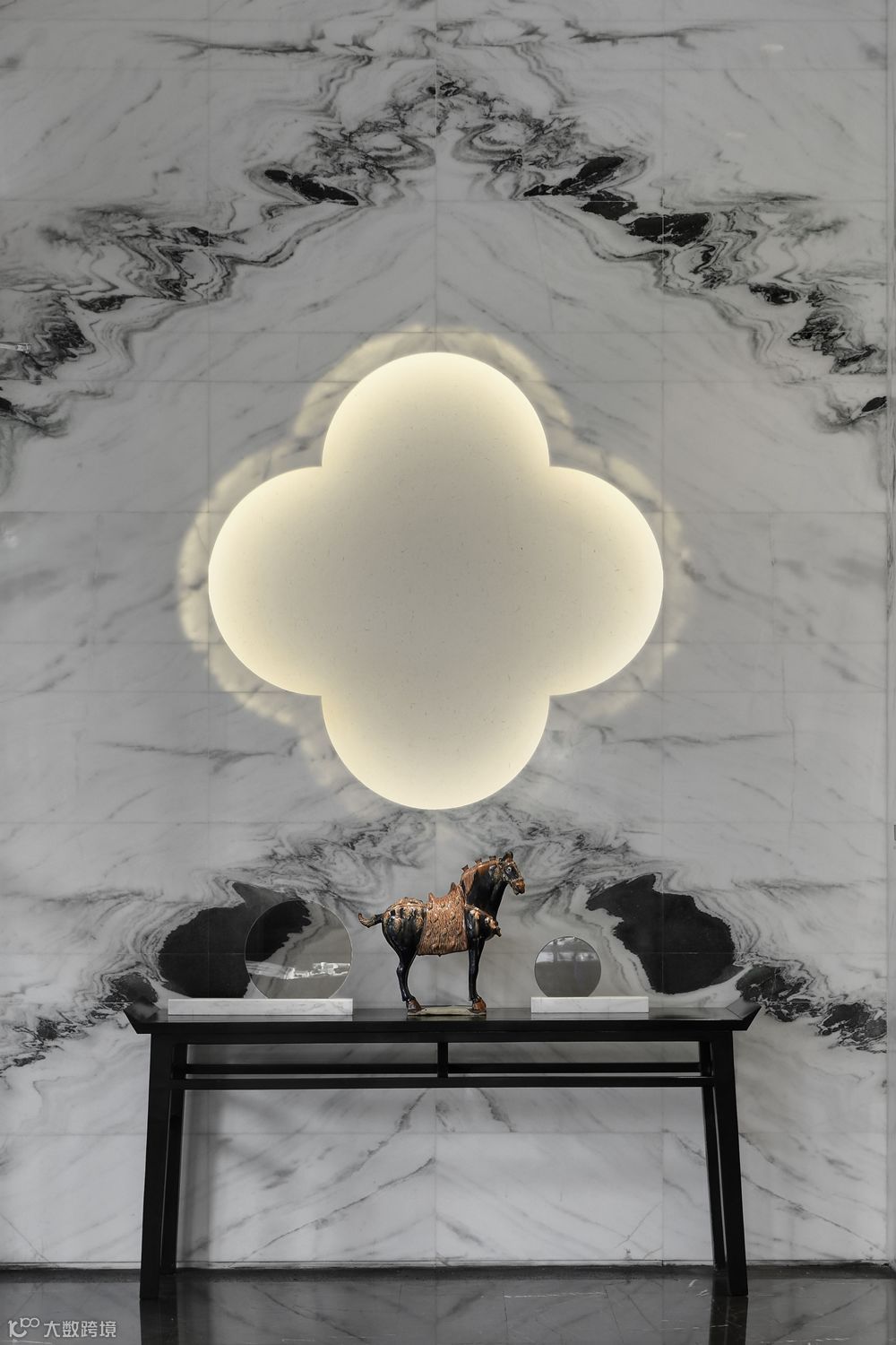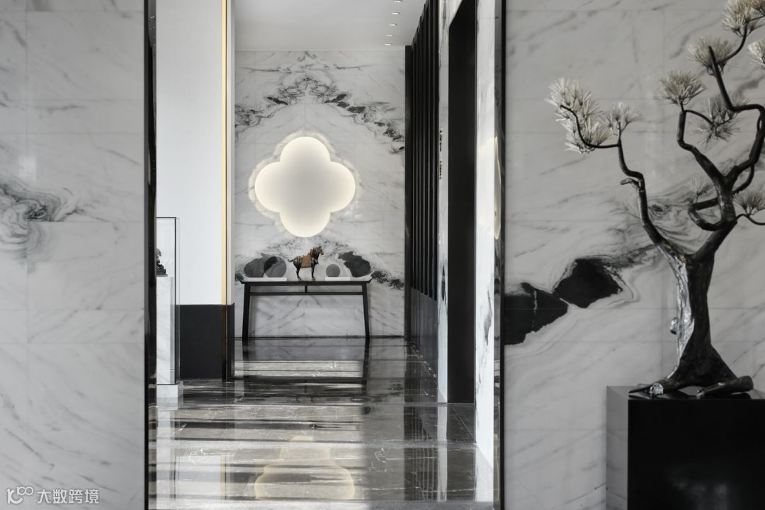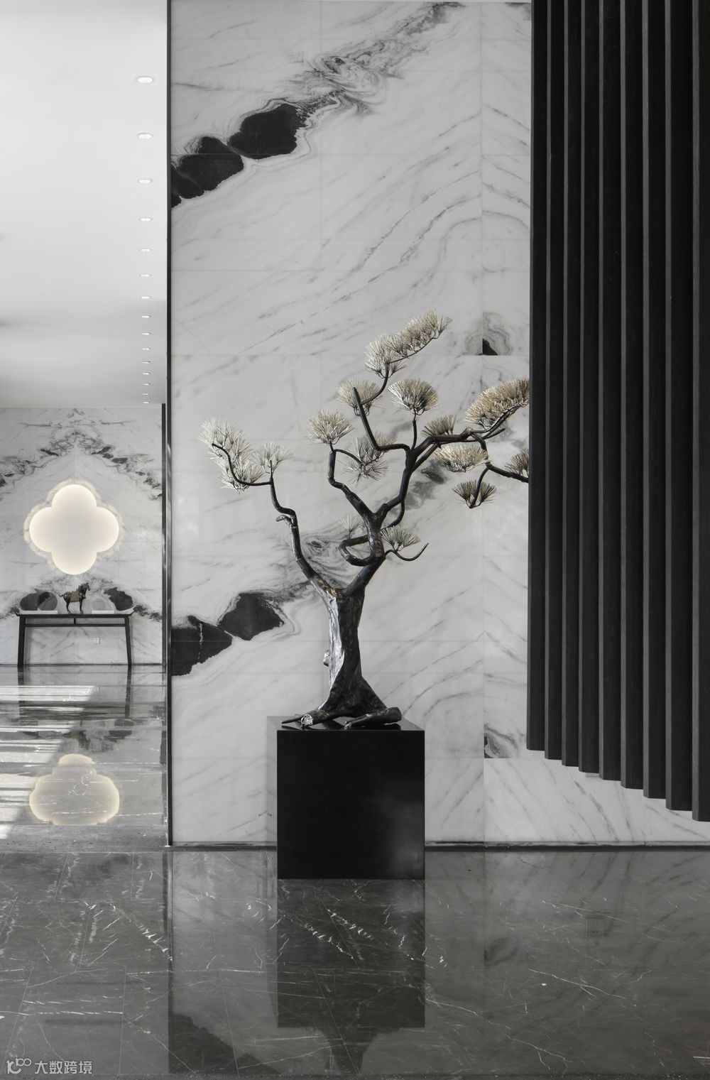 售楼处贯穿室内外景观和样板房的参观动线中,运用新中式的表现手法,让业主时刻感受中国传统文化。