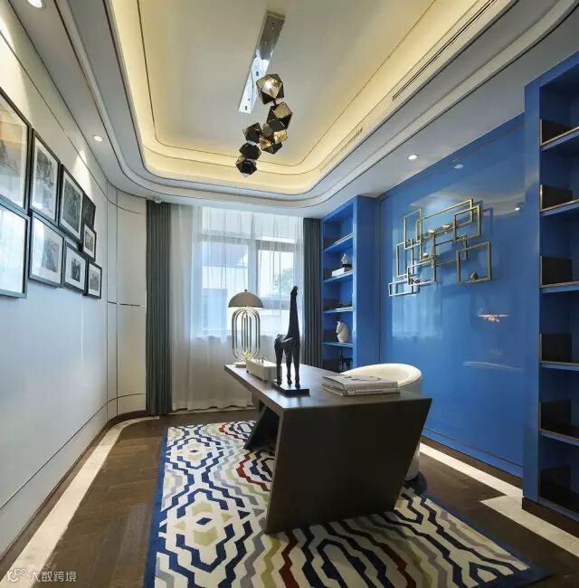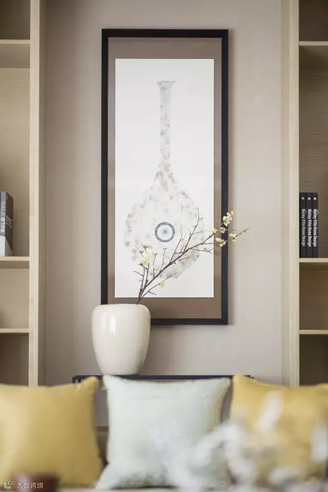 淡雅的背景中跳跃着明丽的色彩,优雅中透着几许活力。黑与白的泼墨晕染了整个空间的文化。