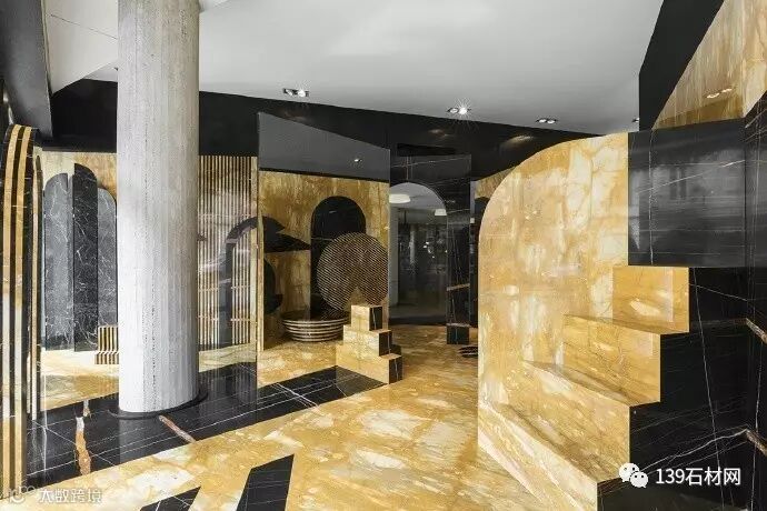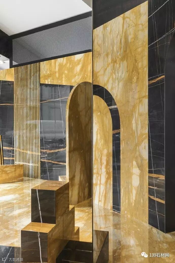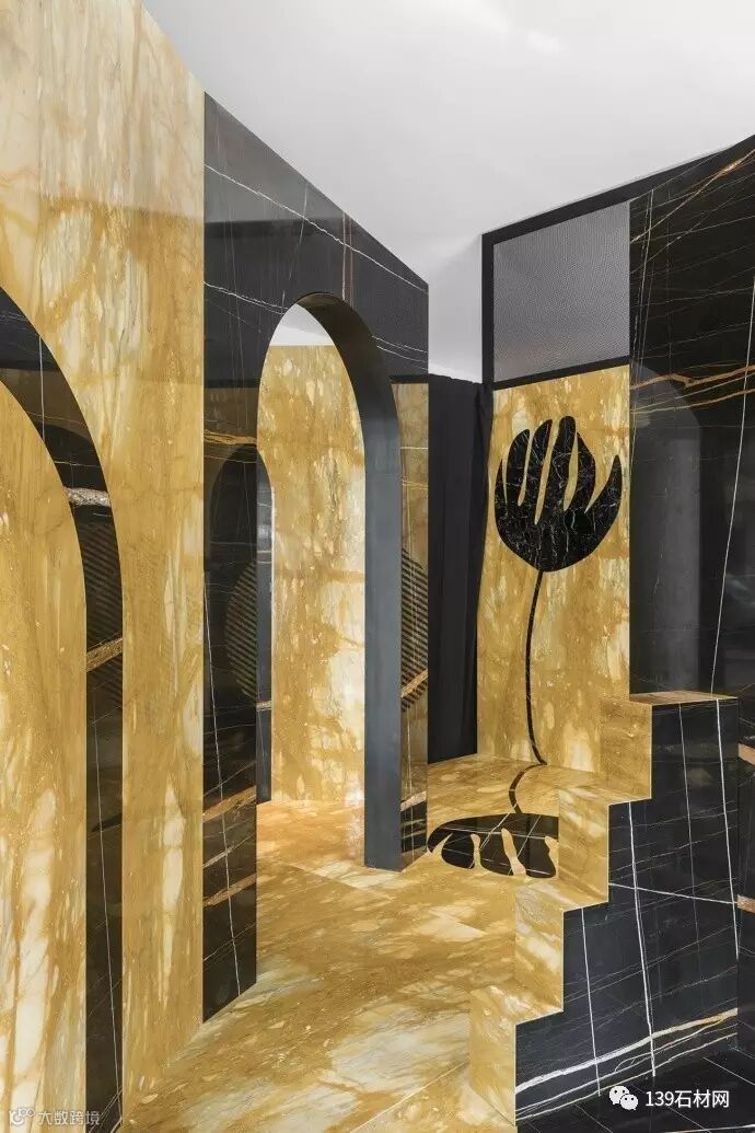 这是来自突尼斯的劳伦黑金与流金岁月大理石的激烈碰撞,强烈的视觉冲击感,风格强劲,却又各自突出着自己的特点。